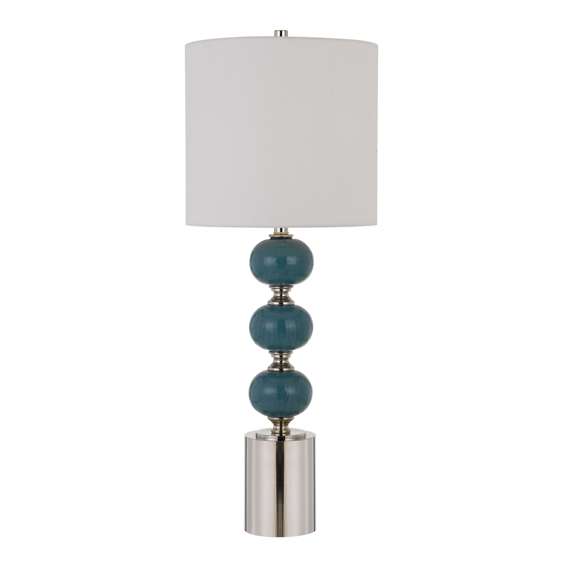 Stacked Ball Design Table Lamp with Fabric Shade Set of 2 Blue and Silver