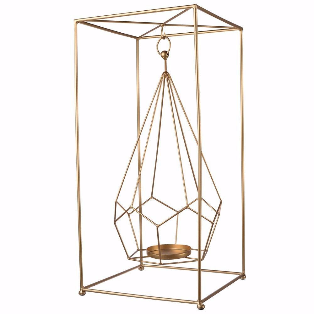 Cast a new imposing piece to your d?cor collection to restyle it with a geometric design and alluring structure. Showcasing a gold finish, the metal Candle Holder is crafted from metal and features the hanging flair.
