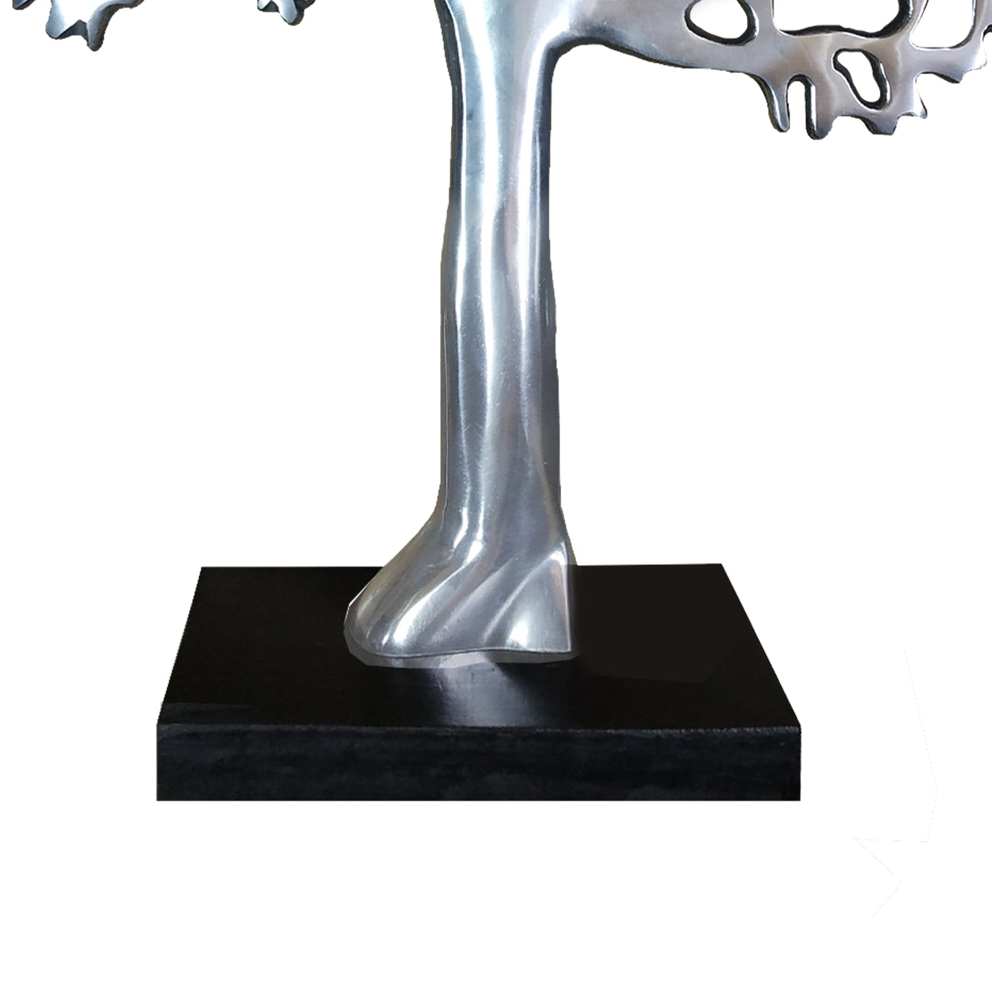 This stylish piece of decor item comes in the form of a unique tree and is sure to become the center of attraction in your living room space. Made from aluminum in silver color finish, this tree can be displayed as a symbol of luck and wealth. This tree decor can be a perfect combination of age of beliefs and modern art. It has been crafted exquisitely on a black color block base that oozes a design filled with real class and sophistication.