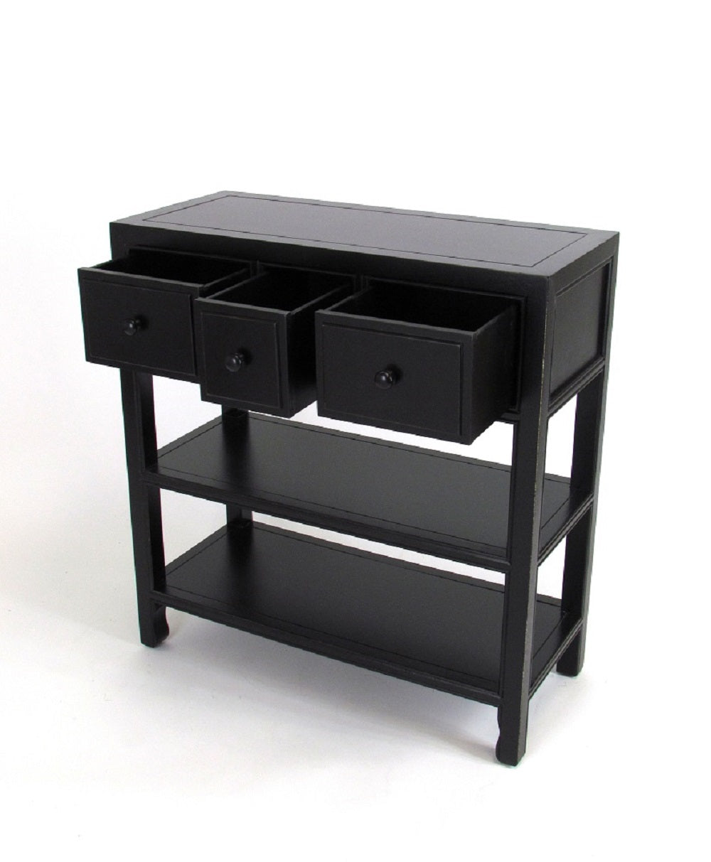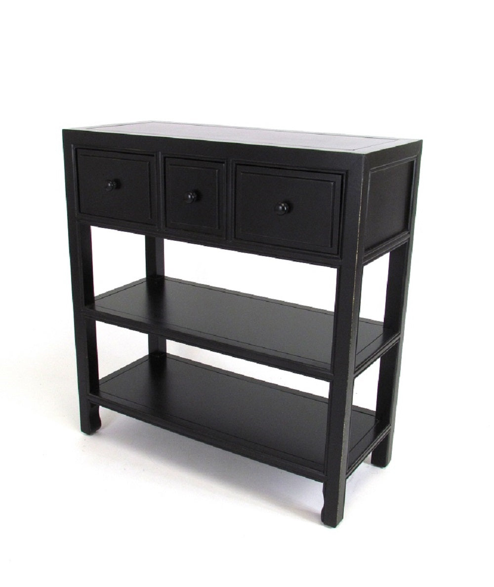 Add this classic console table to the entrance of your home as a welcome station and to unload everything from your day out. Built of sturdy wood this console is very convenient with three drawers and two shelves that can hold anything from mail, books to keys. With a catch all dish or flora display sitting on top of the console will bring a bit of calm and ease knowing your things are nicely stored. In a family room this is a great place to coral game boards, game consoles or keep toys organized and off the floor. This classic console will help to keep personal items corralled and maintain a clean polished look. This console can also be used a server for example a coffee station or desert station with plenty of space on top for a delightful presentation. All the open space and drawers to hold extra plates, napkins or silverware to help entertain everyone. This console will soon become a favor to help hold necessary items at arm's reach in any room.