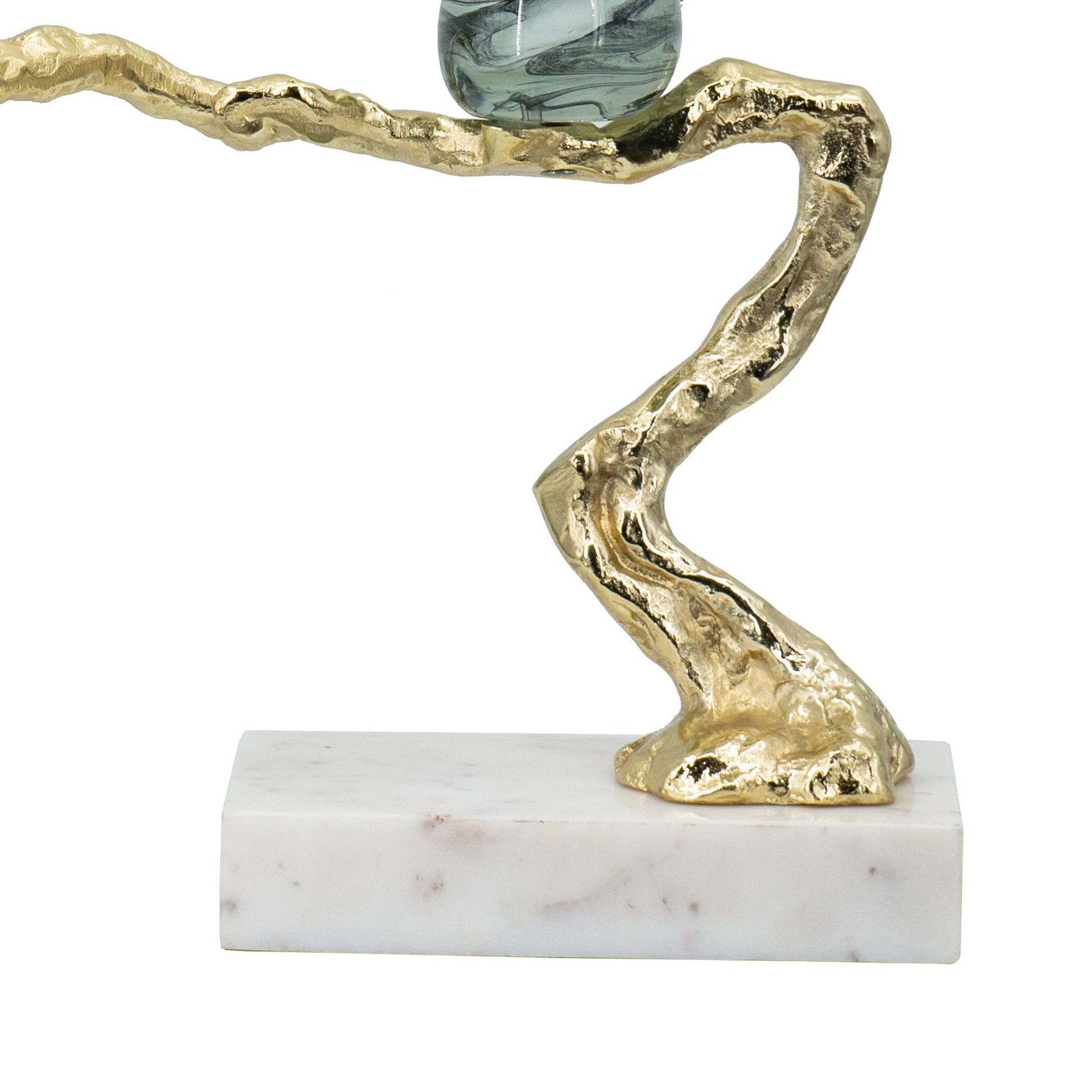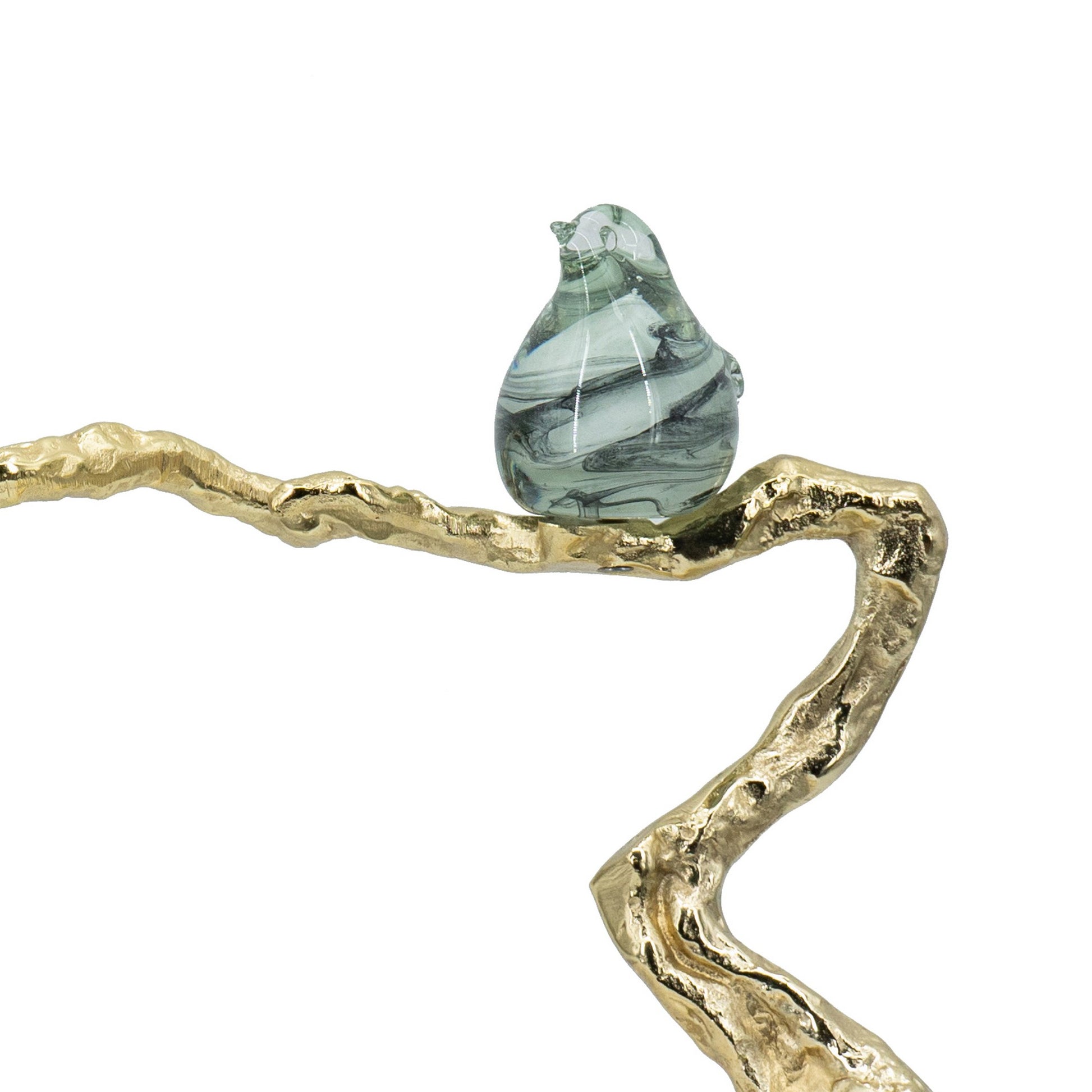 Introduce your interior to the majesty of the great outdoors with this gorgeous multi-material statuette. Made from aluminum metal, cool marble, selenite stone, glass, and iron, this is a distinctly unique piece, depicting two petite birds serenely sitting opposite each other on a delicate branch, that is perfect for any mantelpiece, entryway, or display shelf.