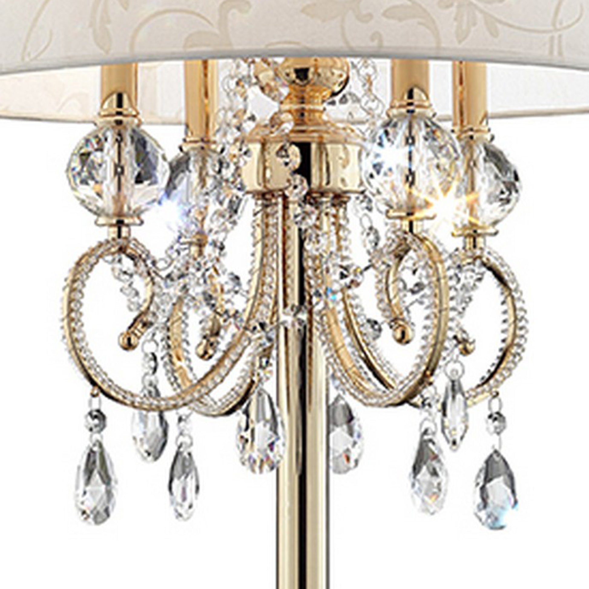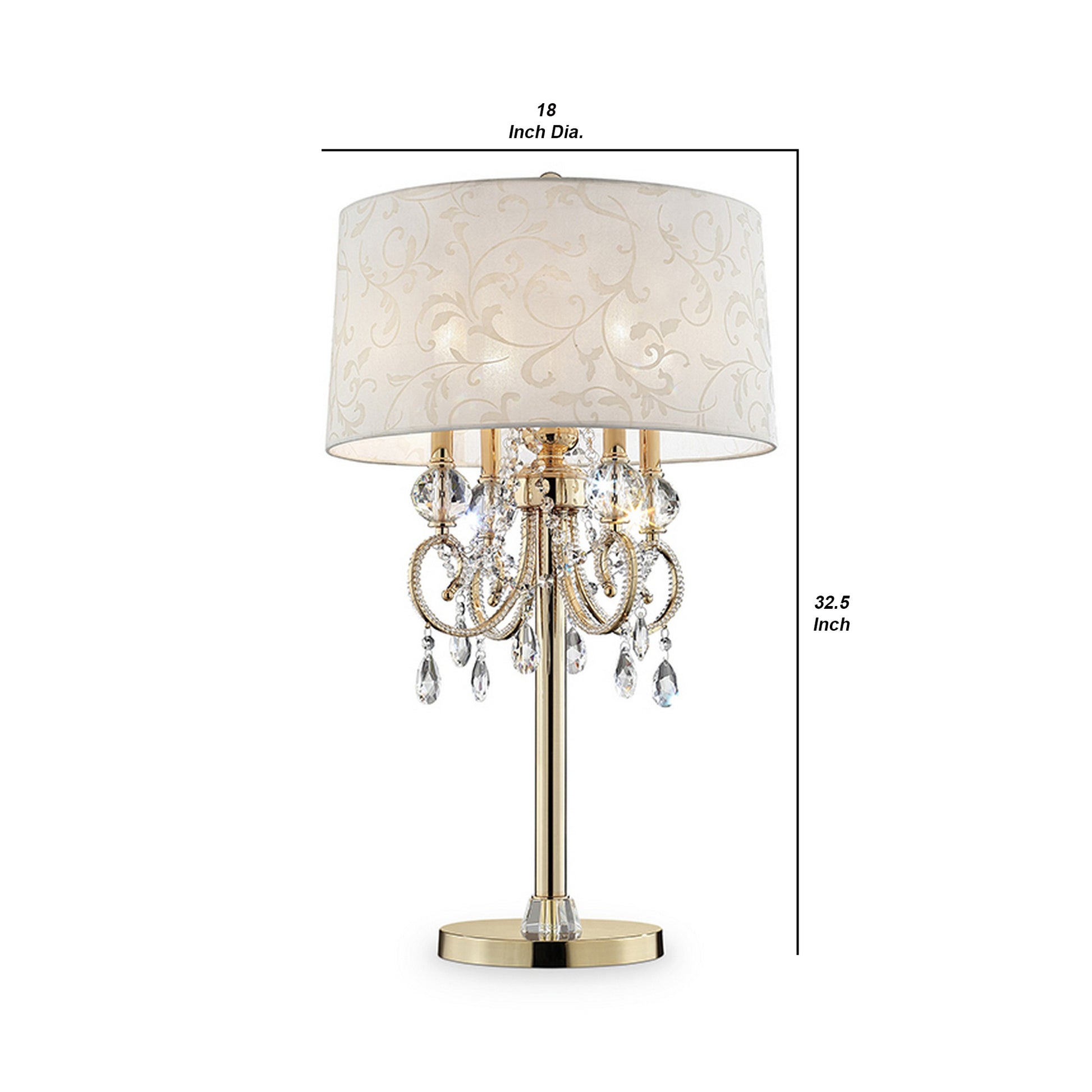 Table Lamp with Crystal Accent and Baroque Printed Shade Gold