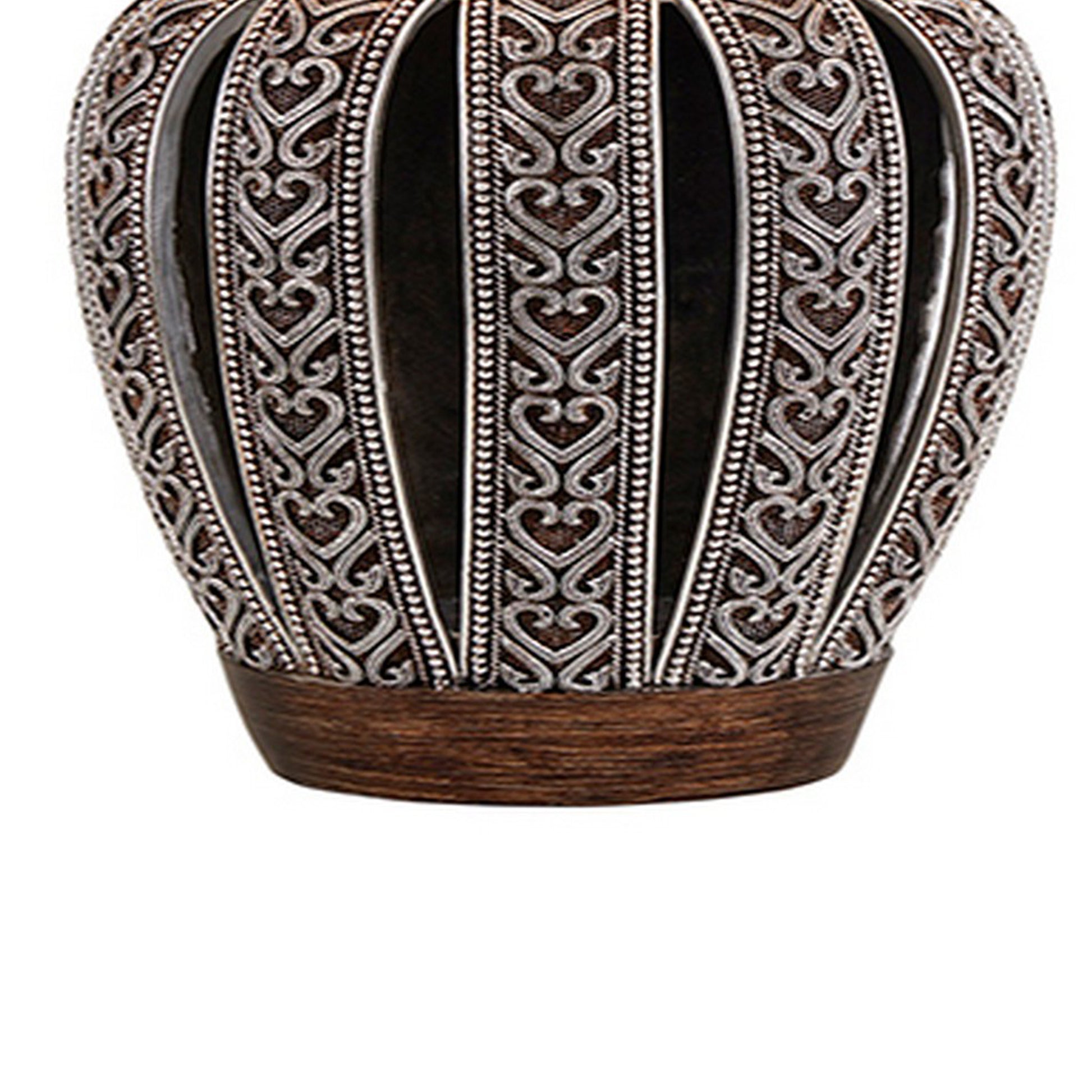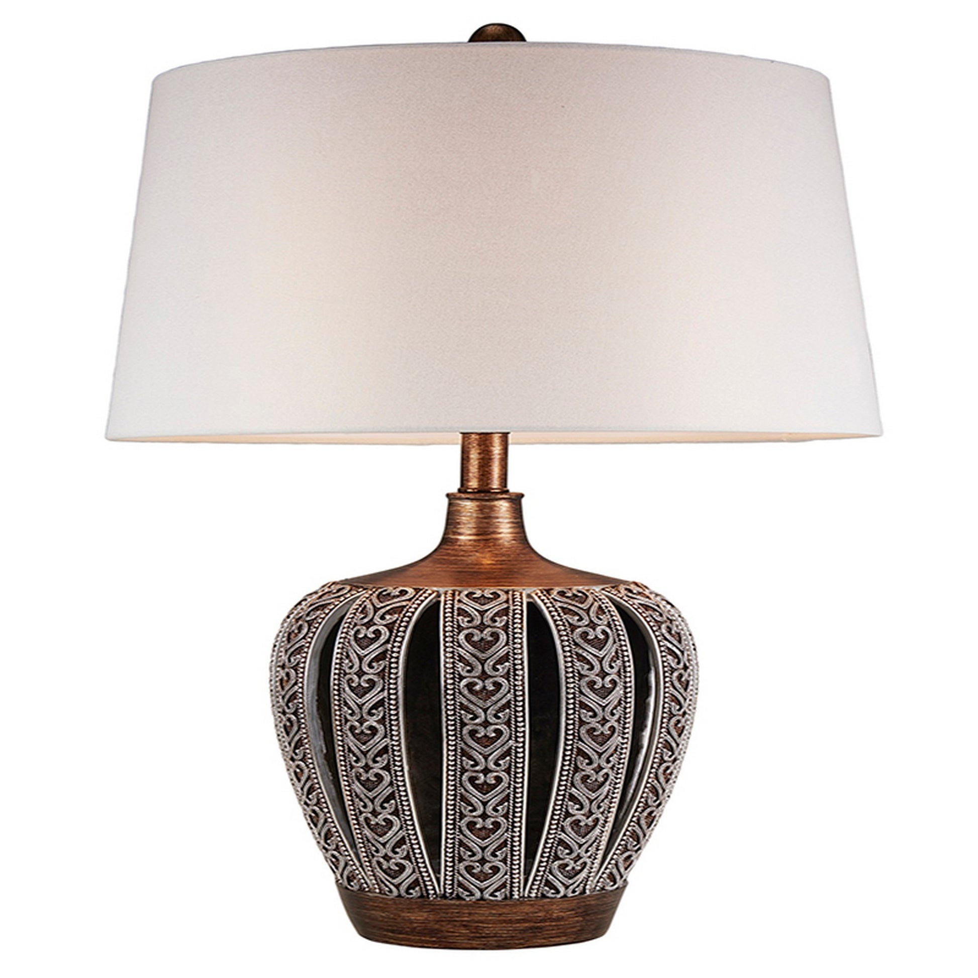 Table Lamp with Curved Paneled Polyresin Base Bronze
