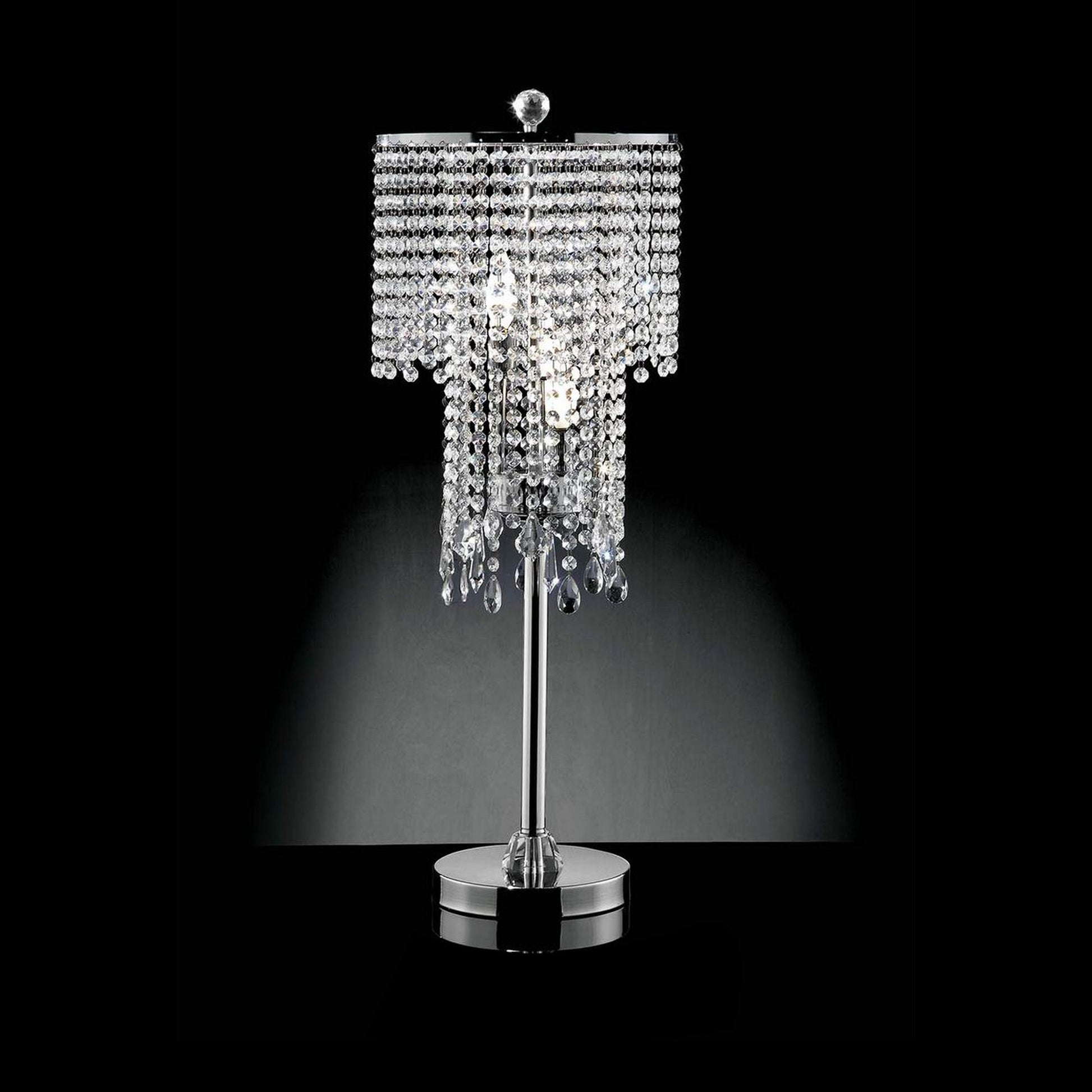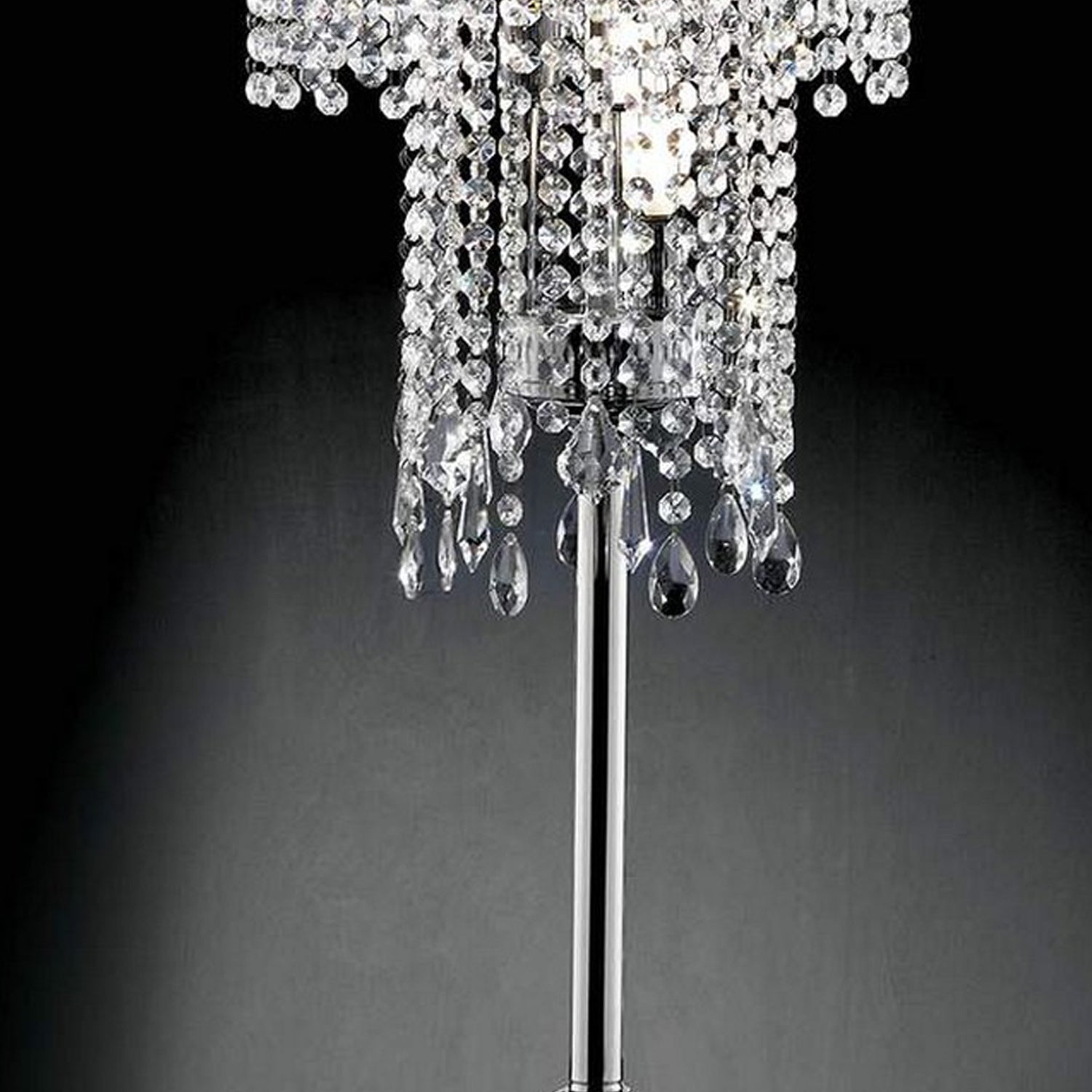 Table Lamp with Droplet Crystal Accents and Sleek Support Silver