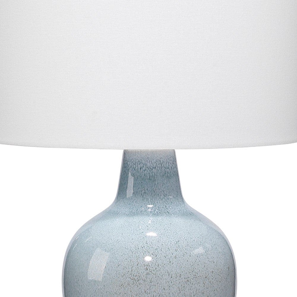 Illuminate your space in style with this table lamp, crafted from ceramic in glaze blue finish. It strikes an bellied silhouette with a white fabric drum shade that rounds out the design. It is functionalized by a 3 way intensity switch and accommodates an E26 bulb base, brings a touch of transitional appeal as it offers a boost of brightness.