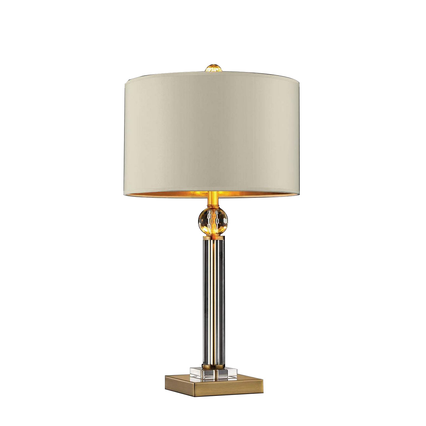 Table Lamp with Drum Shade and Crystal Ball Accent Gold and Cream
