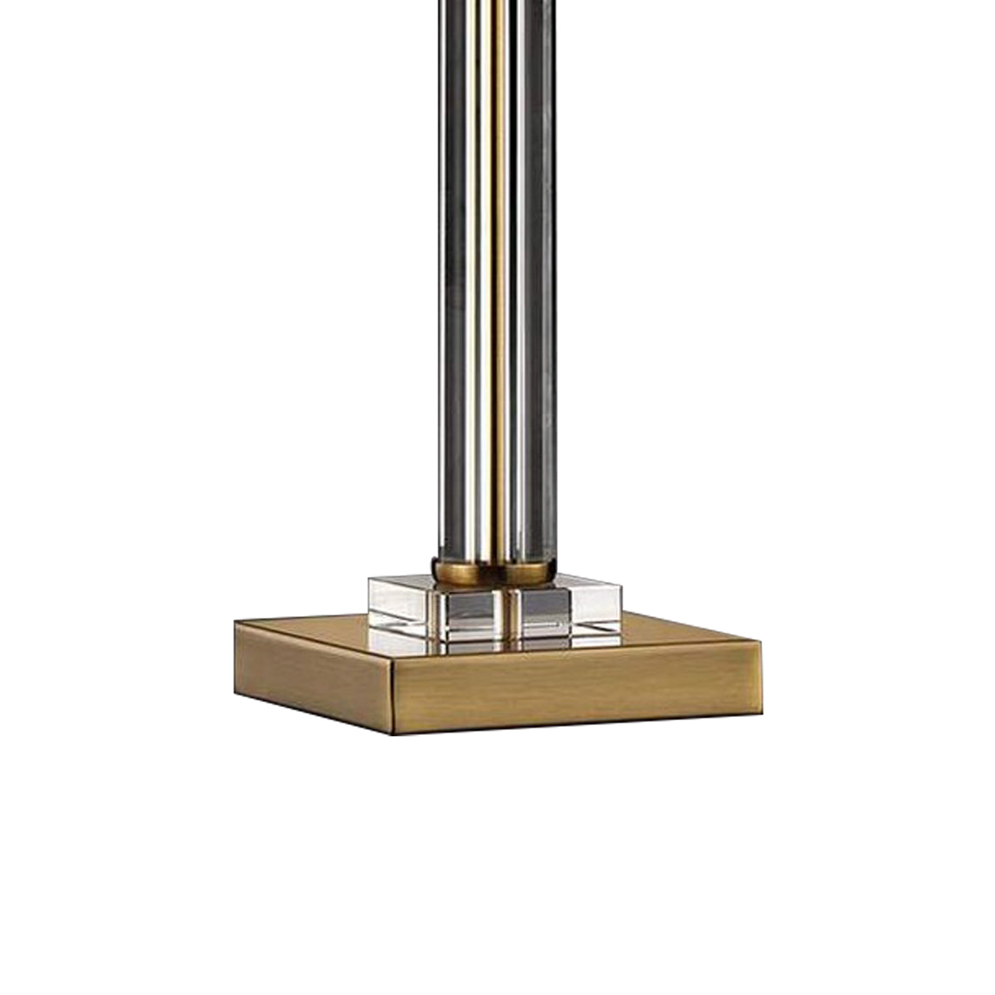 Modern and minimalist style, this table lamp is a perfect addition to your bedside or office. The Slim line and gracious glass profile sit atop a gold metal square plate. A simple off white drum shade maintains a crisp and clean look that turns light into a warm glow.
