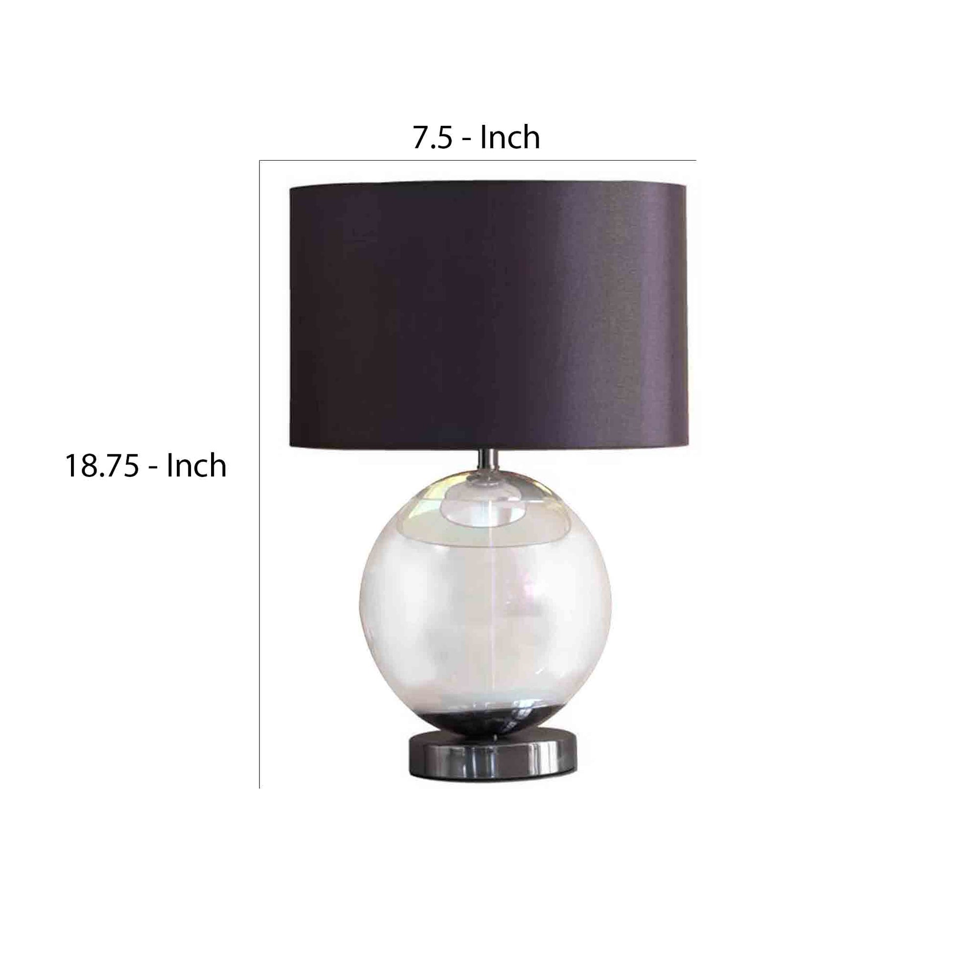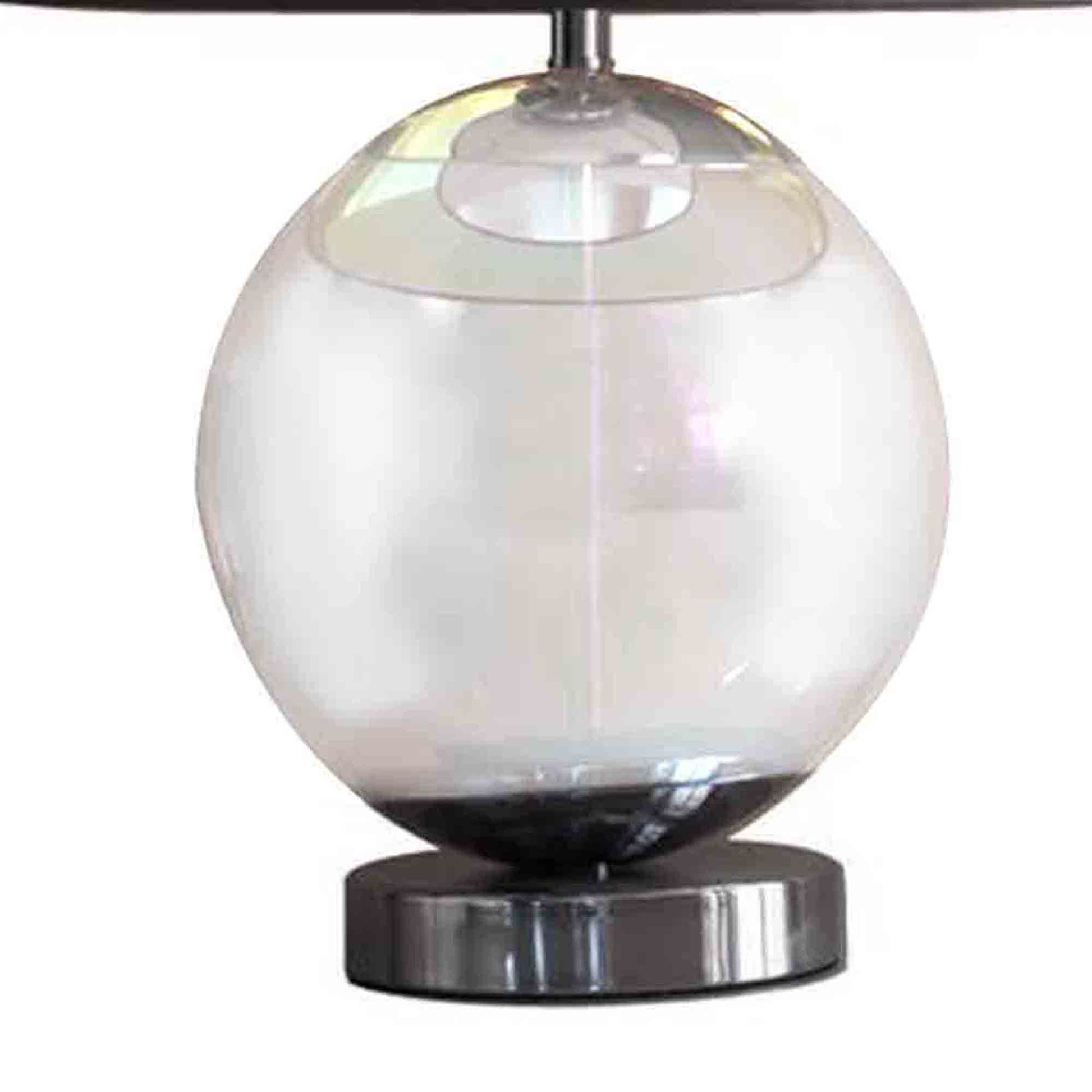A perfect amalgamation of style and modern design, this elegant Orb Table Lamp transforms your existing decor setting. Exuding elegance and sophistication, this it comes with a iridescent glass orb and coordinating silver finish round base. The table lamp features a gray drum shade made from cotton and linen.