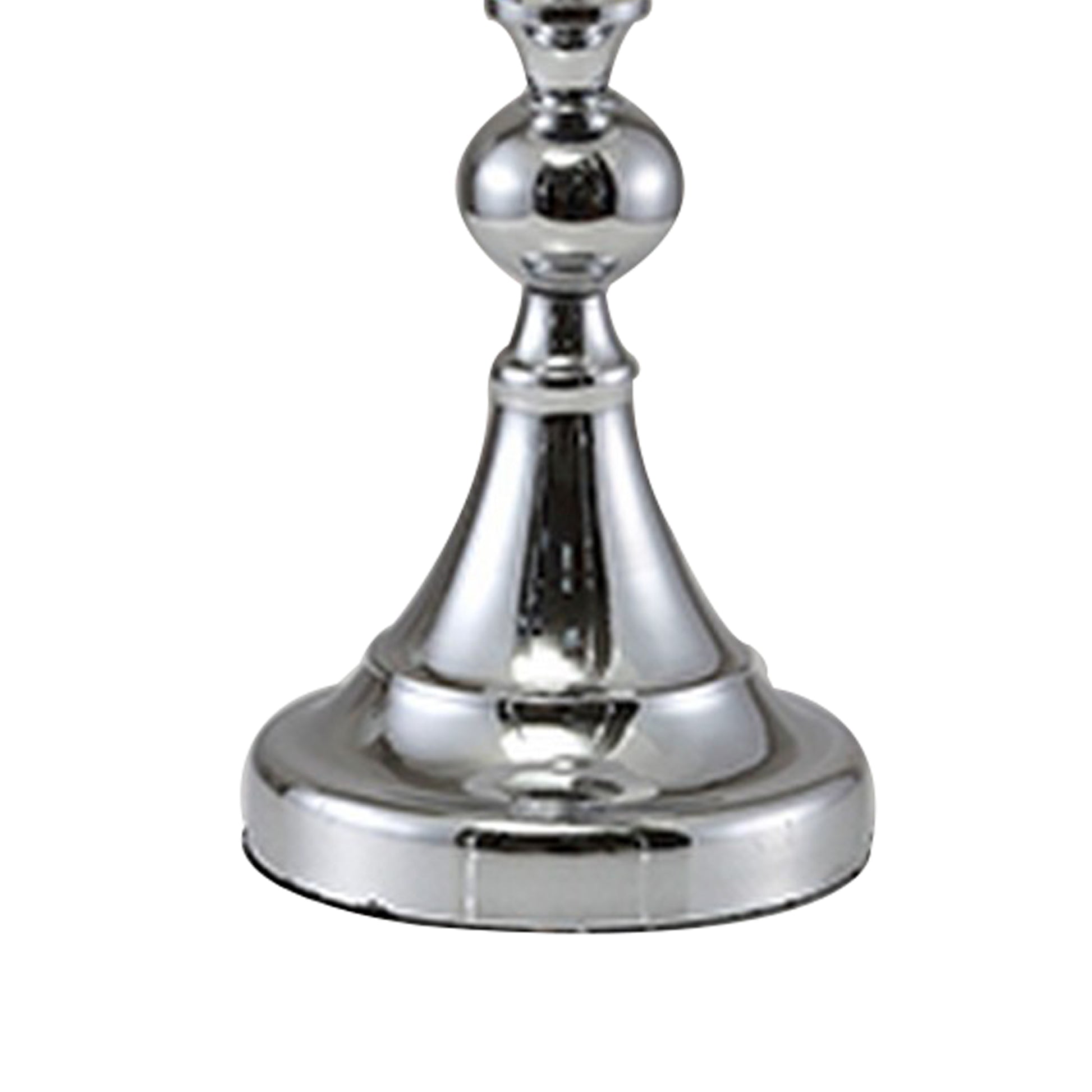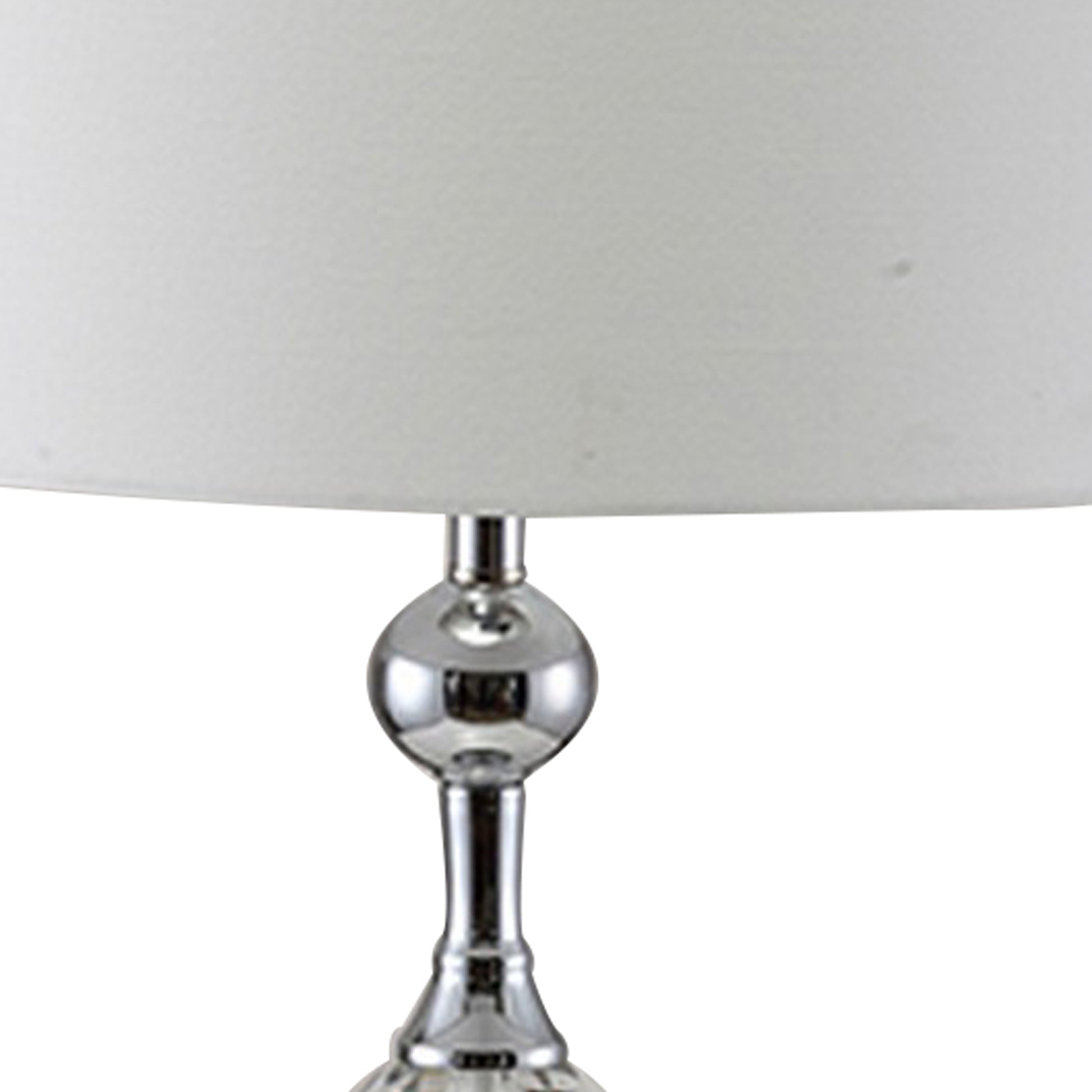 Personalize your living space with a contemporary touch by bringing in this sophisticated table lamp. Featuring a metal body, it showcases stylish crystal accents along with metal balls. It is incorporated with a fabric drum shade that uses 1 type A bulb of 100 watts and a pull chain switch for control.
