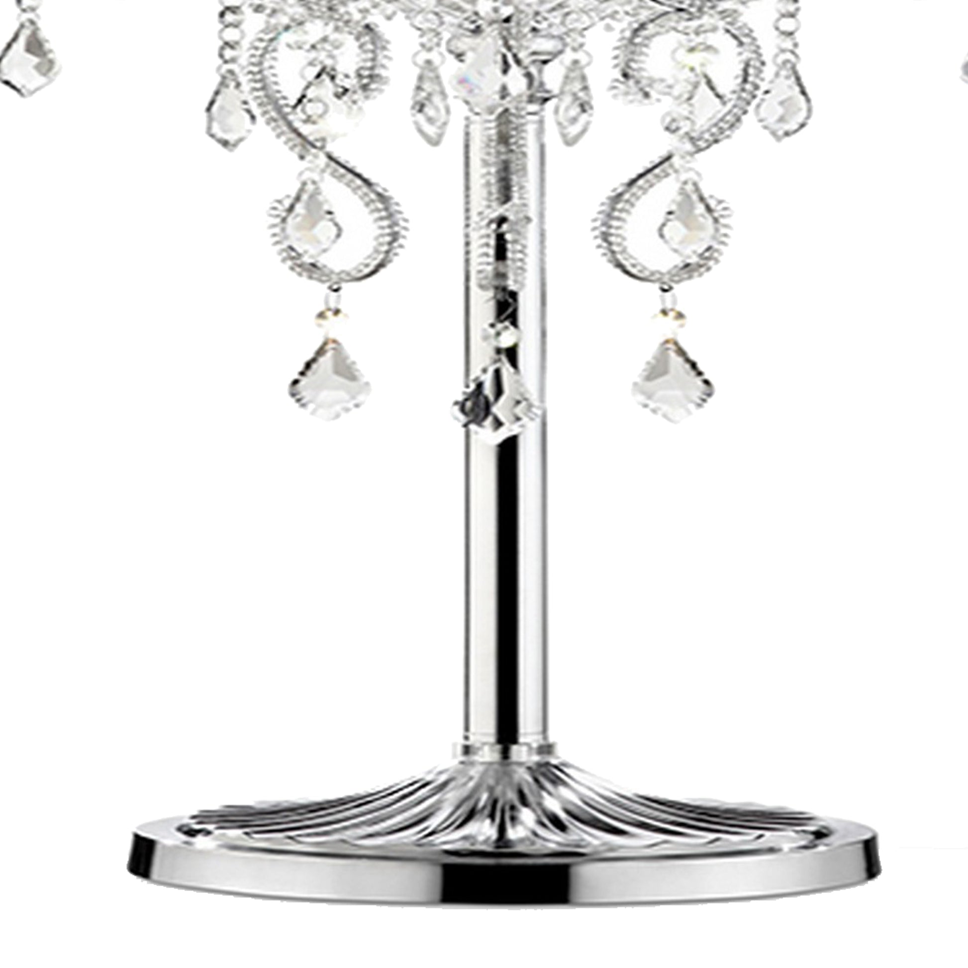 Table Lamp with Metal Base and Hanging Crystals Silver
