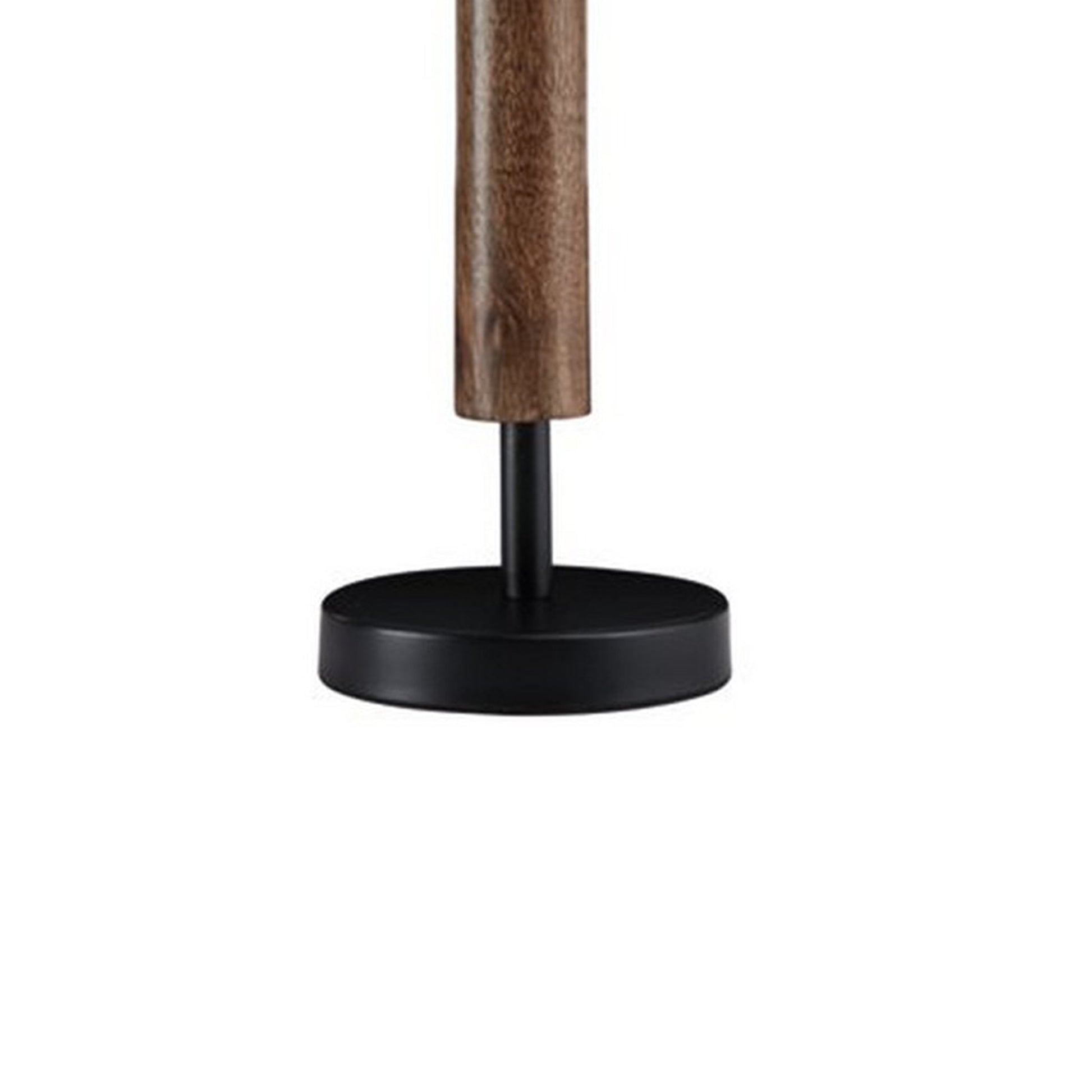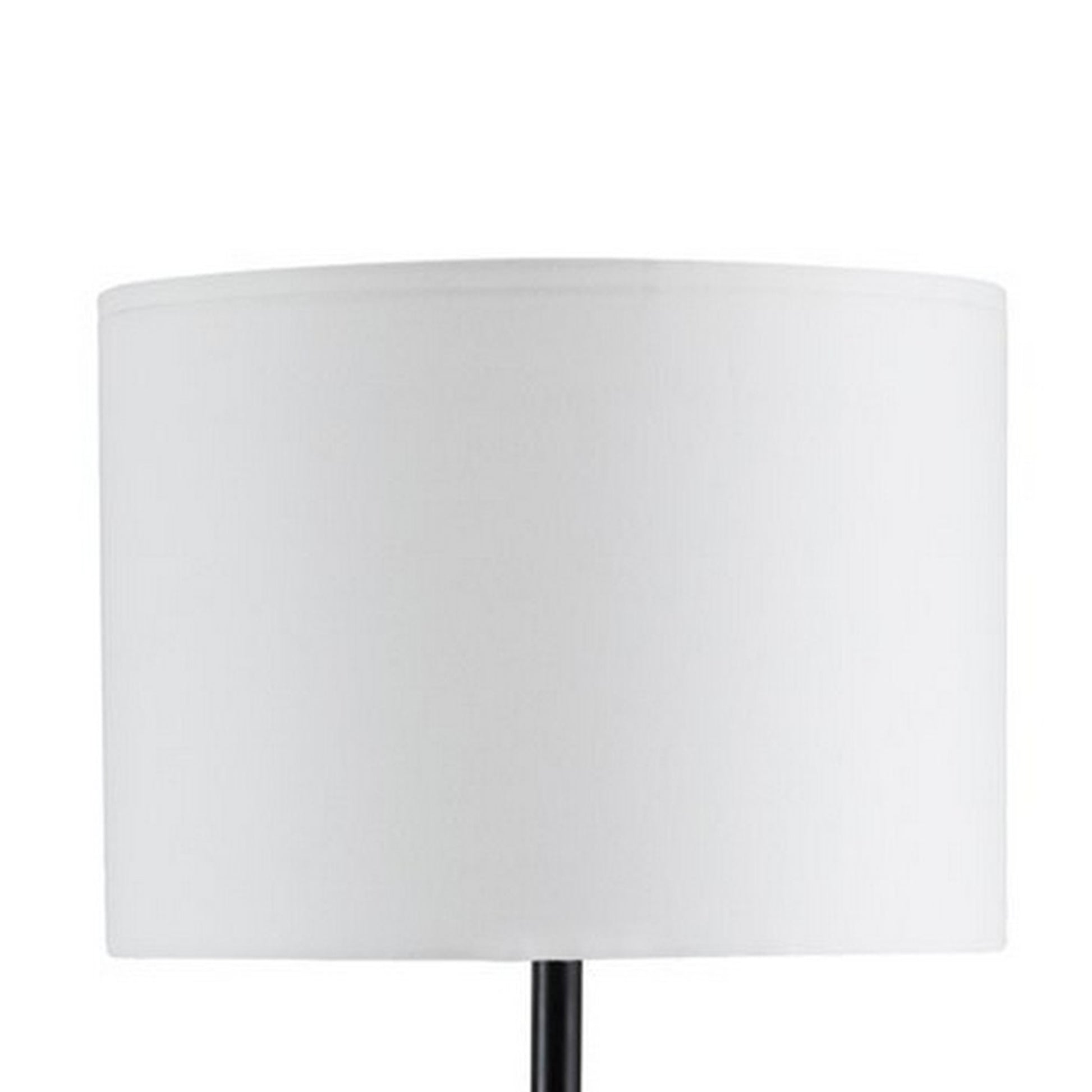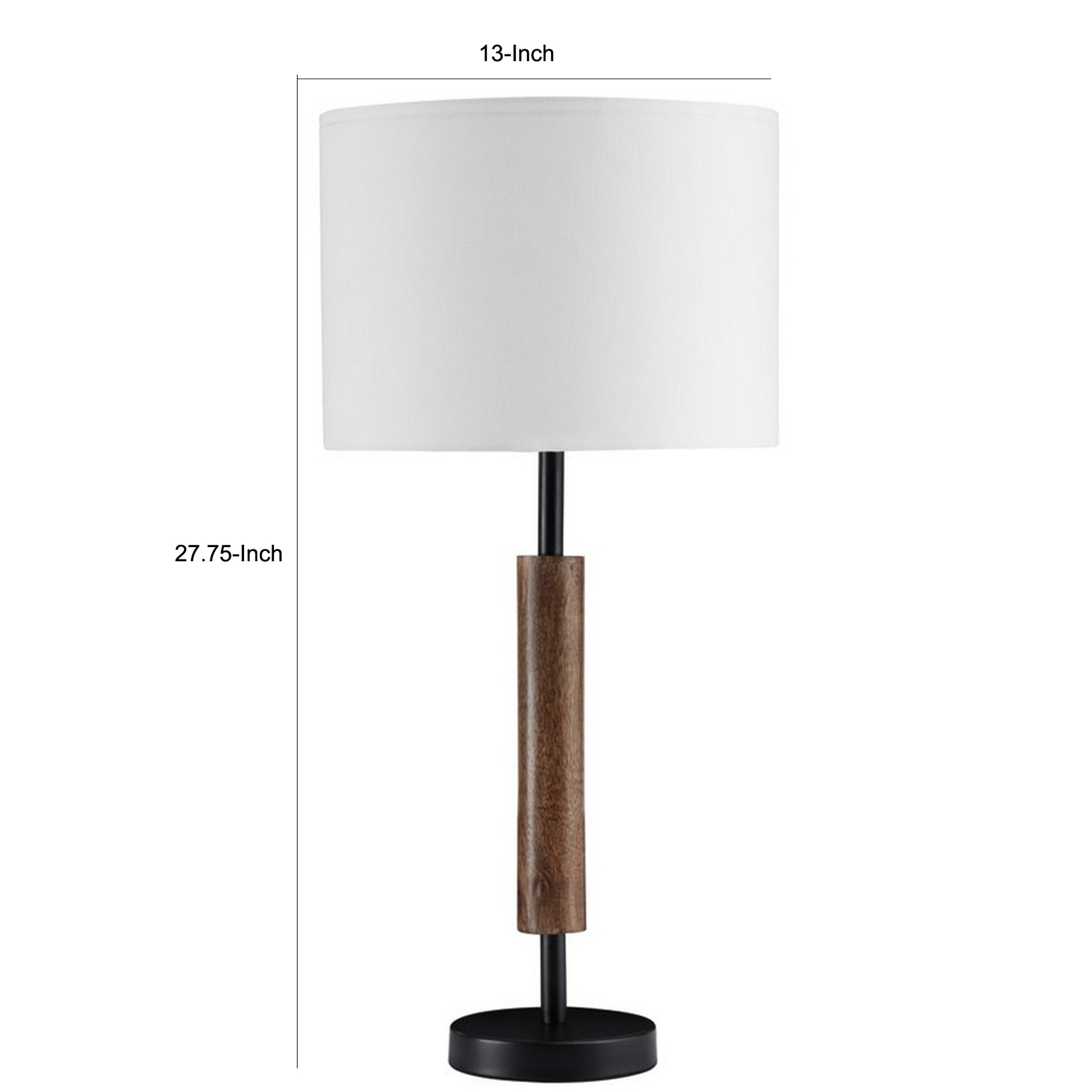 Illuminate your existing decor setting by bringing in this transitional style Table Lamp which comes with a drum shade and is supported on rolling pin frame with a round base. Wrapped with white color fabric, it is accented with brown and black color finish.