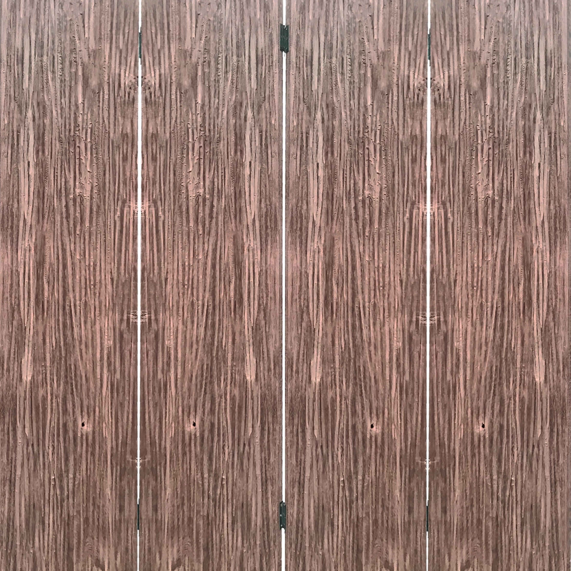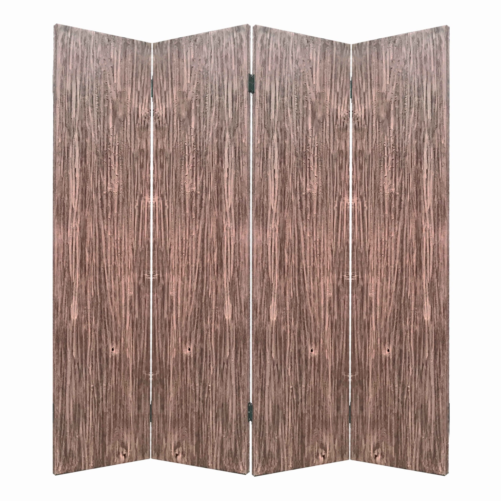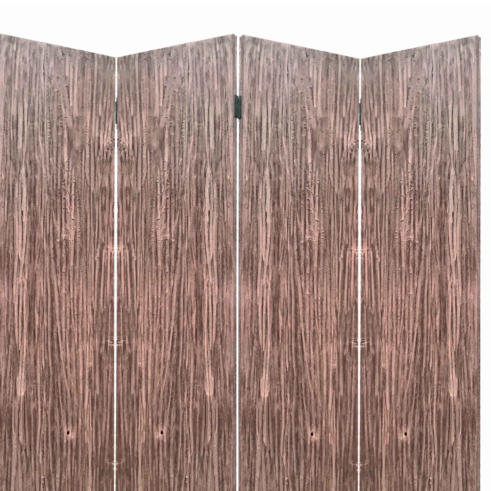 Textured and Bark Designed Wooden 4 Panel Room Divider , Natural Brown