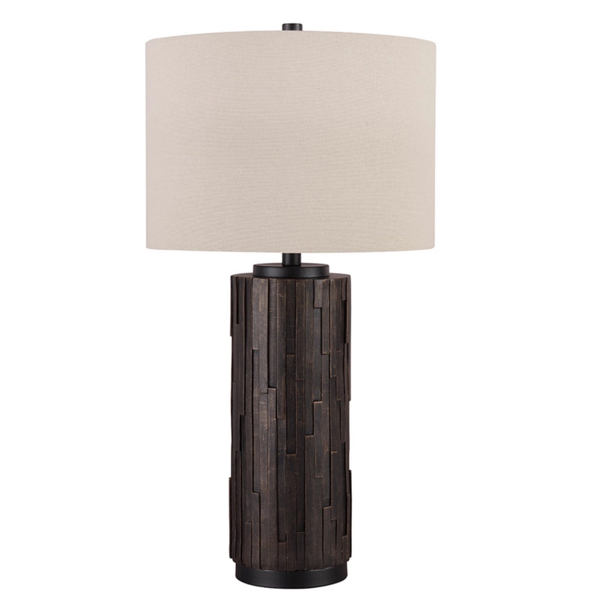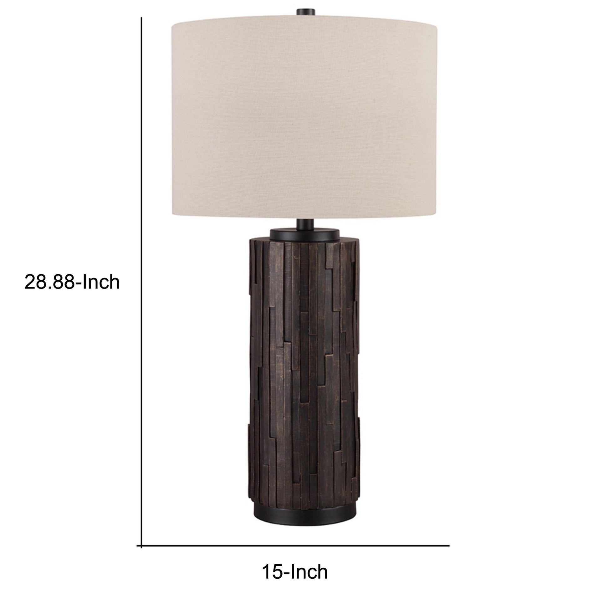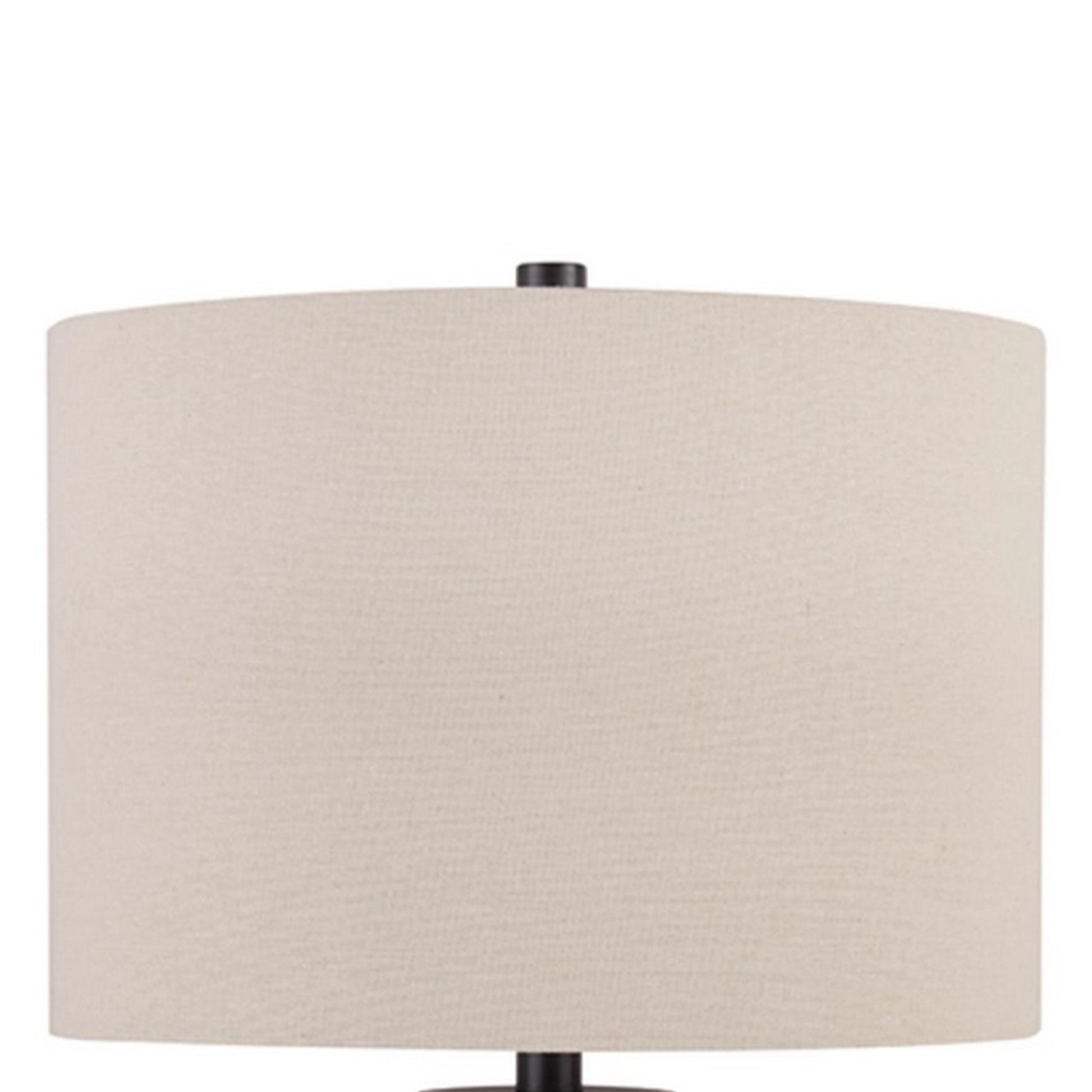 Textured Polyresin Frame Table Lamp with Drum Shade Off White and Bronze