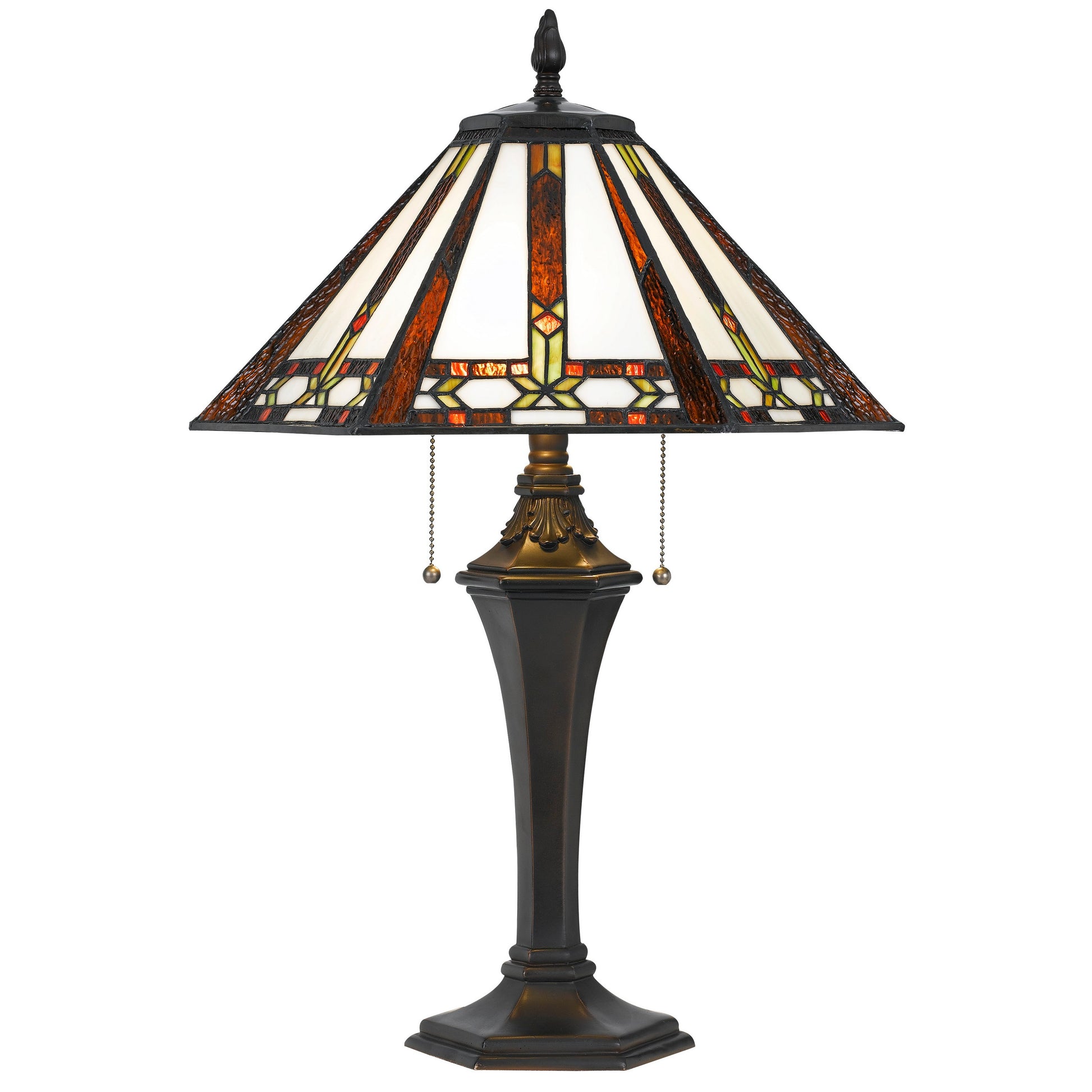 Tiffany Table Lamp with 2 Pull Switches and Resin Pedestal Body Bronze