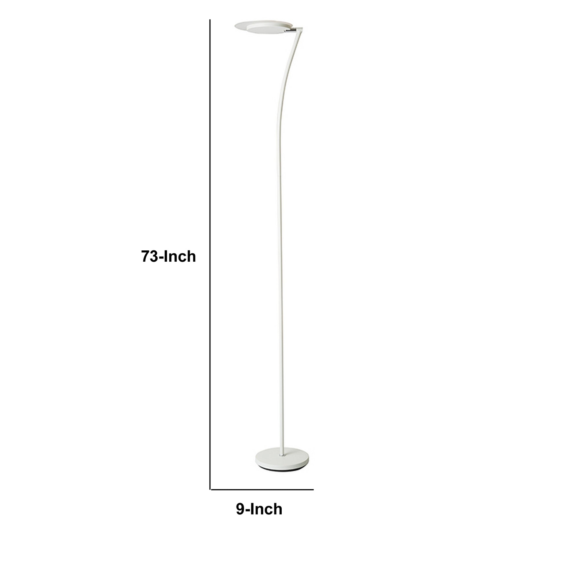 Bring a touch of class to any room with the inclusion of this stunning Floor Lamp, featuring an adjustable torchiere plate shade with 24Watt LED to illuminate any corner of your home. The sleek tubular metal body with a dimmer in line switch on the cord makes it easy to move from room to room and assemble.