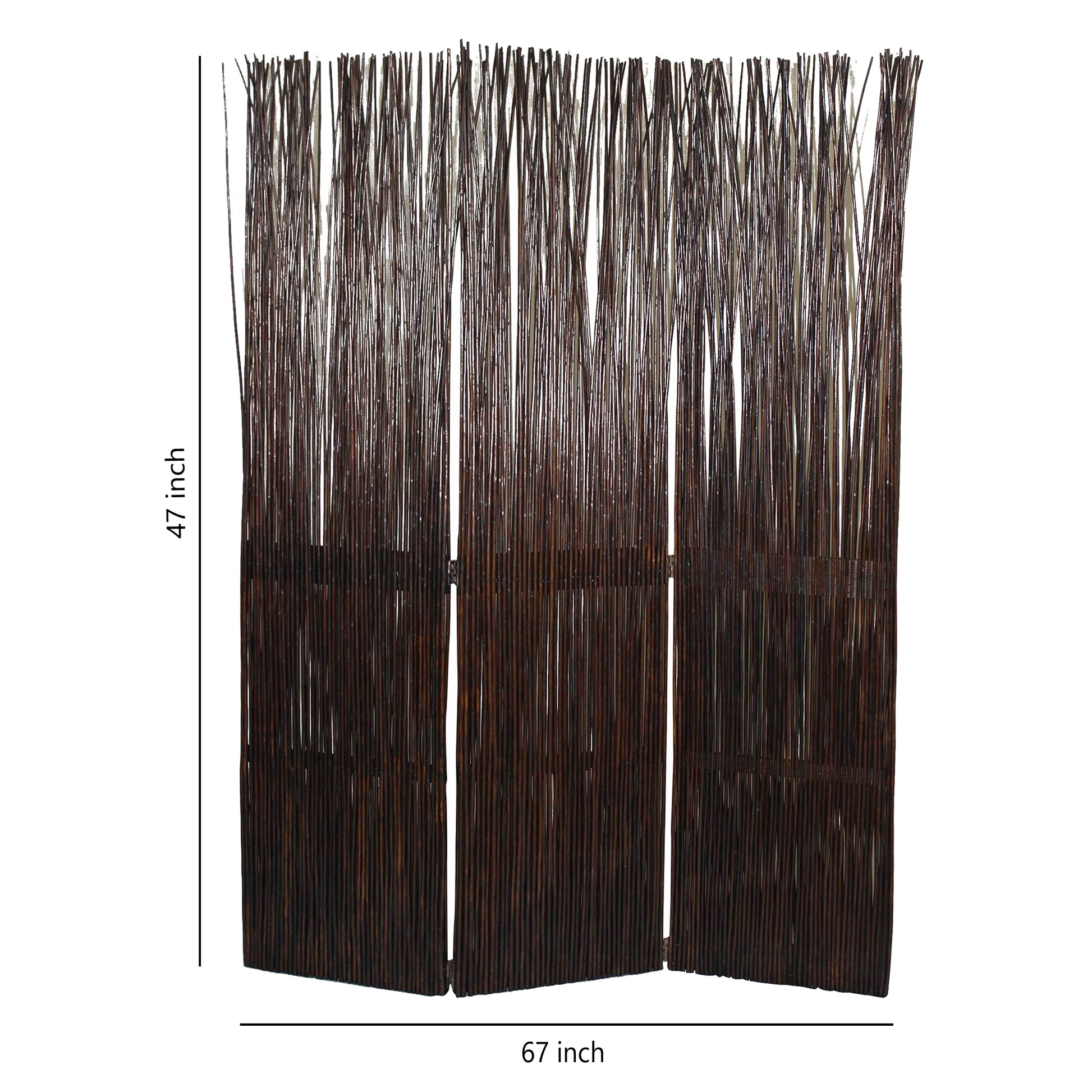 Traditional 3 Panel Wooden Willow Branch Room Divider, Brown