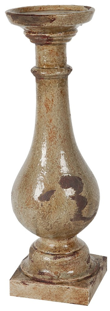 Traditional Style Distressed Ceramic Pillar Shaped Candle Holder Brown