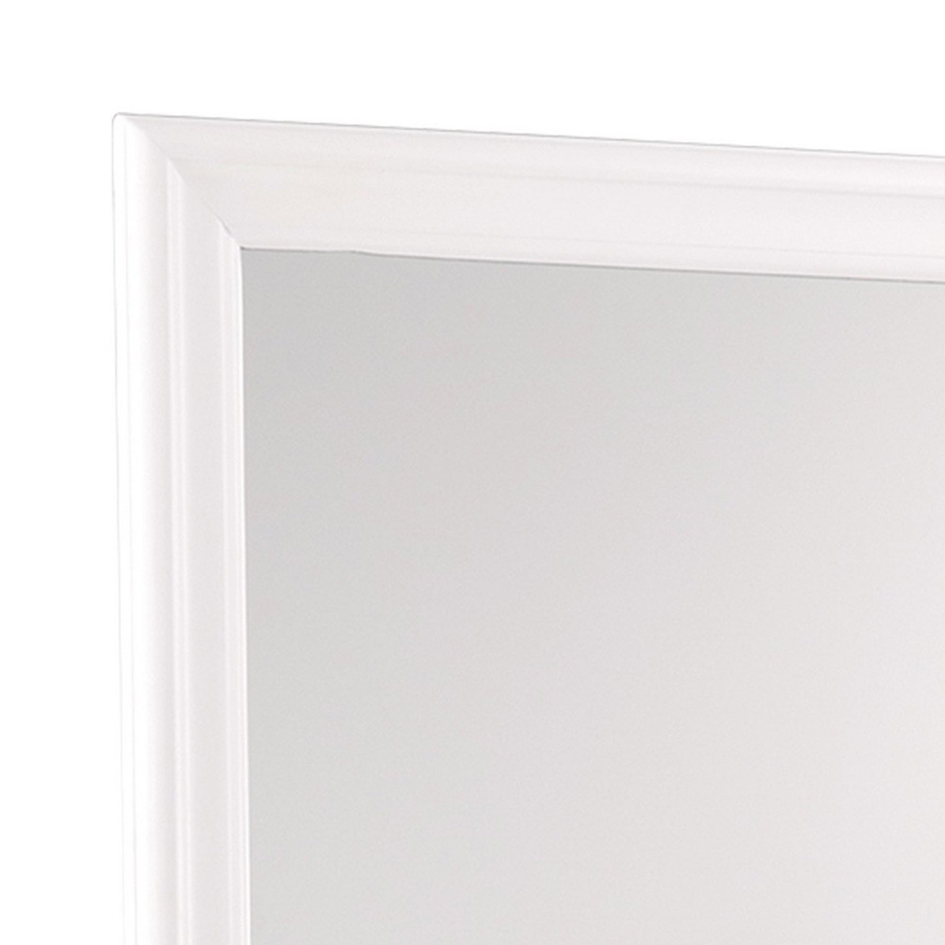 Produce an illusion of light and space by bringing in this transitional style Mirror which comes with wooden encasing in a white finish with beveled edges mirror. Incorporated with a mounting hardware on the back, it will be a perfect addition to your place.