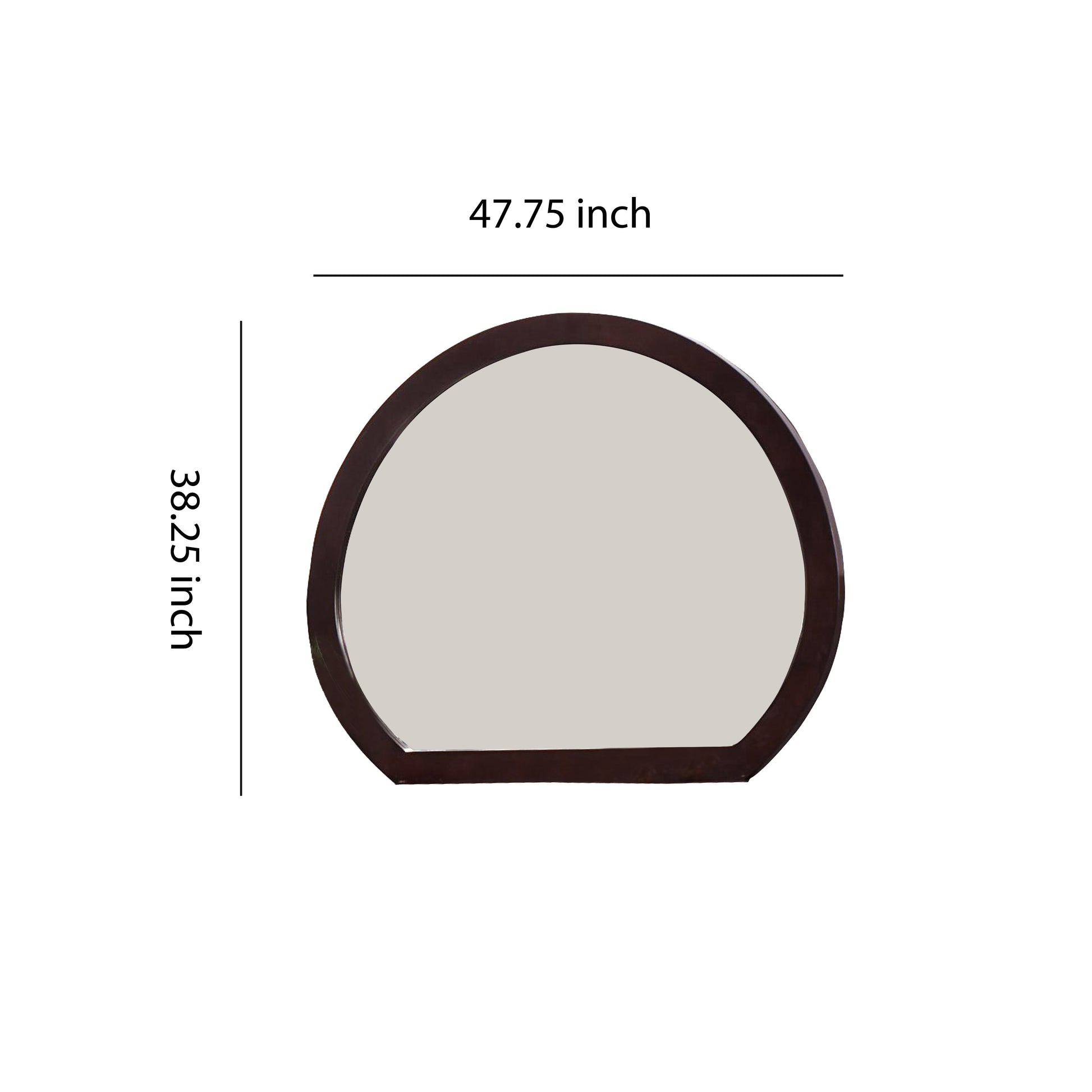 Transitional Style Curved Wooden Encased Beveled Mirror Brown