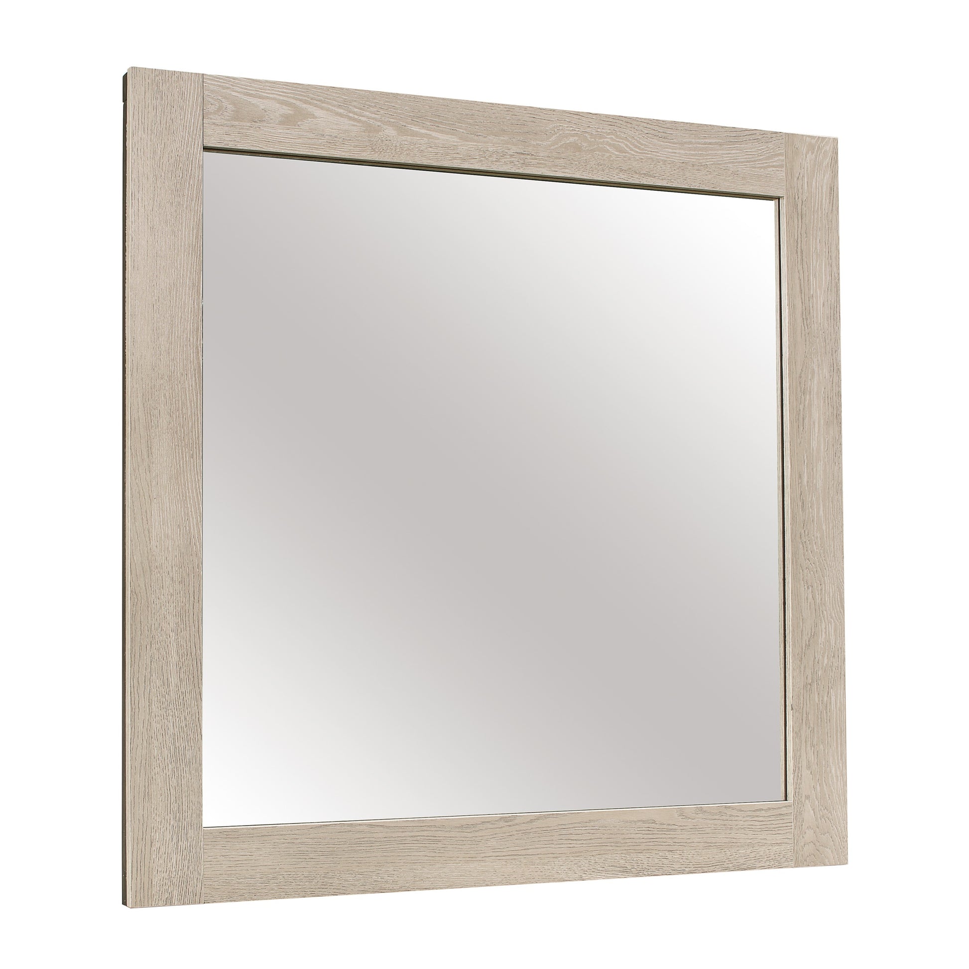 Embellish your dresser with the setting up of this beautiful transitional style Mirror. Designed with minimal aesthetics, the mirror is encased in a washed light brown finished wooden frame. Square in shape, the wooden frame is made from solid wood and faux veneer.