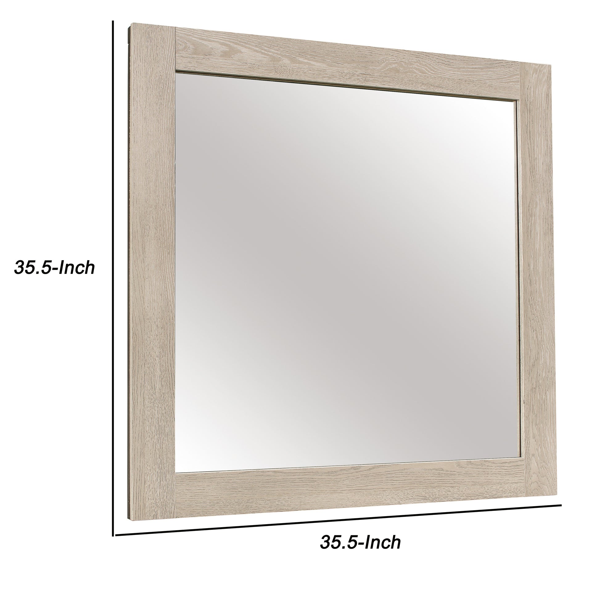 Transitional Style Square Mirror With Wooden Frame Light Brown