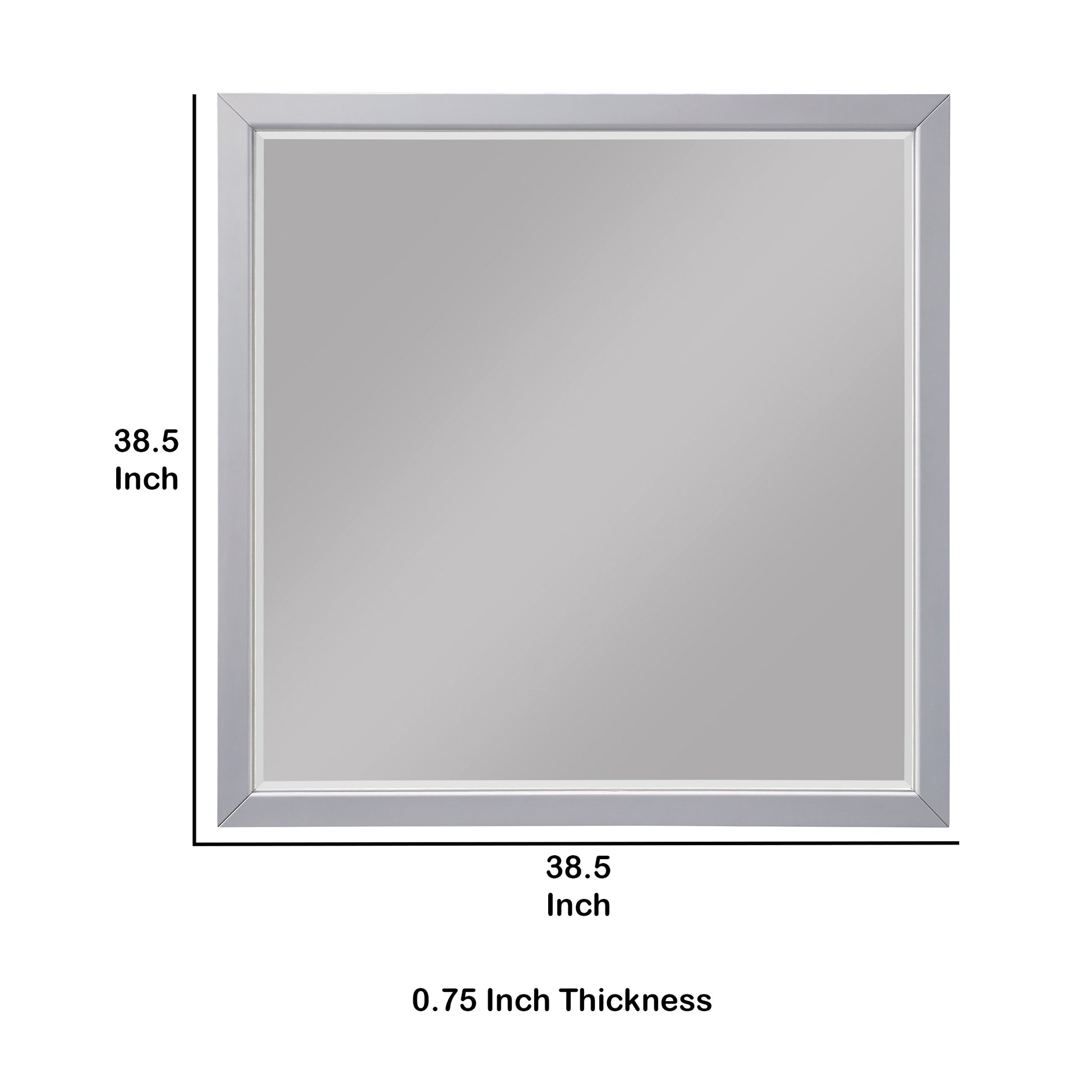 Create an illusion of light and space by bringing in this transitional style Mirror, which comes in a striking gray finish with wooden encasing. Incorporated with beveled edges, it will be a perfect addition to your place.