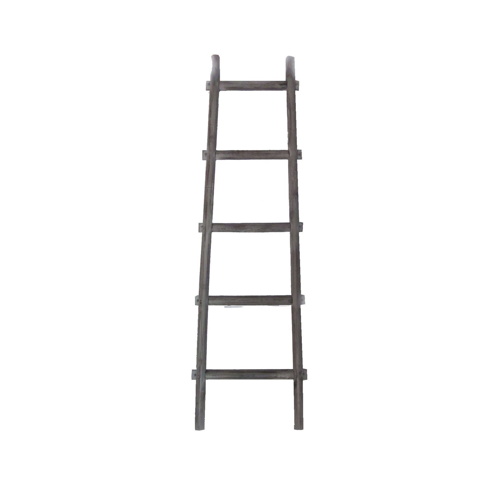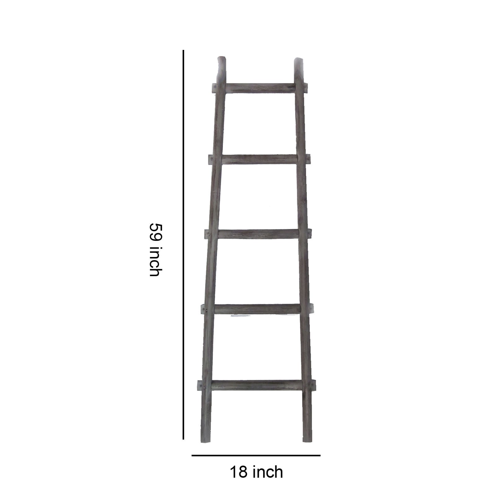 Transitional Style Wooden Decor Ladder With 5 Steps Gray