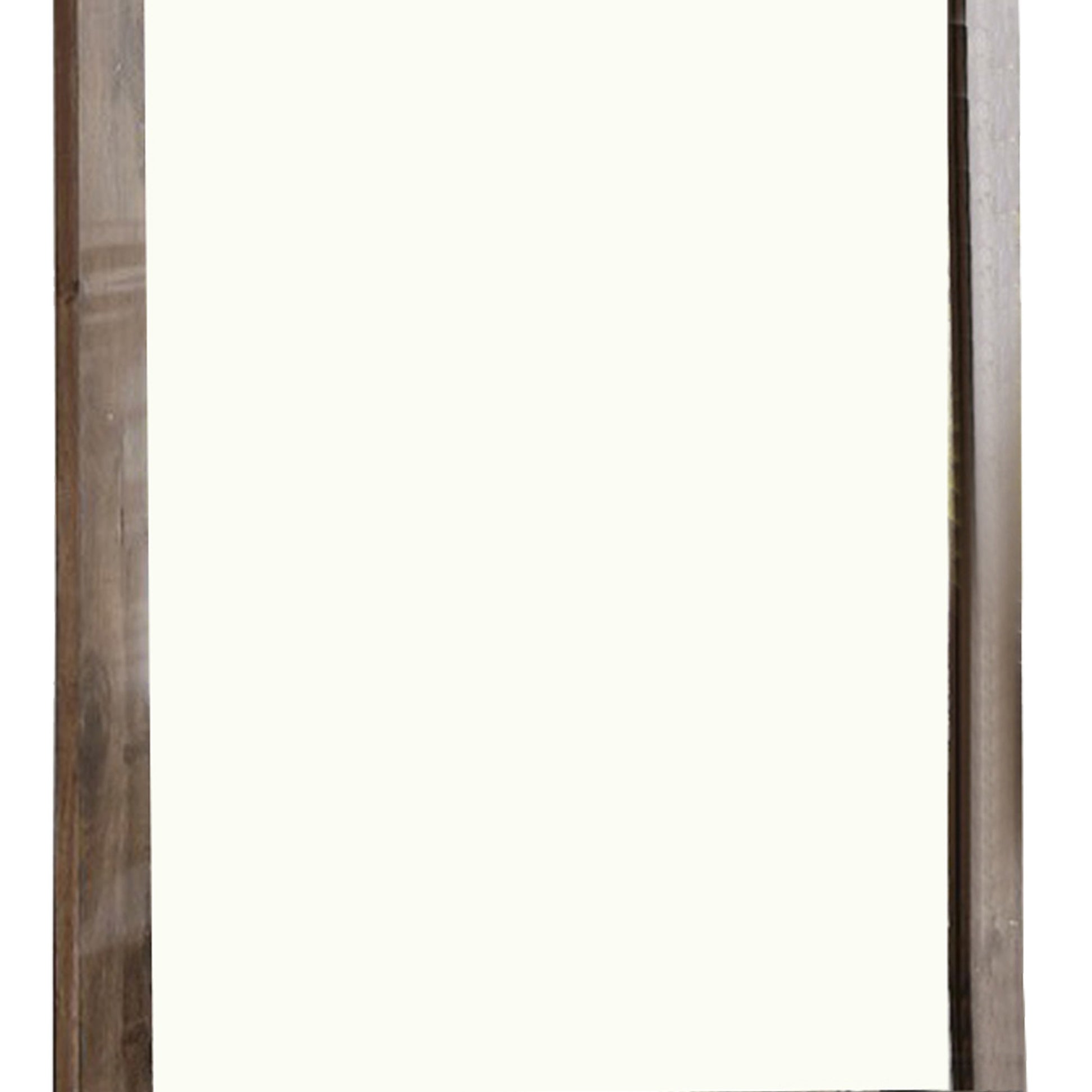 Transitional Style Wooden Encased Mirror With Grain Details Brown