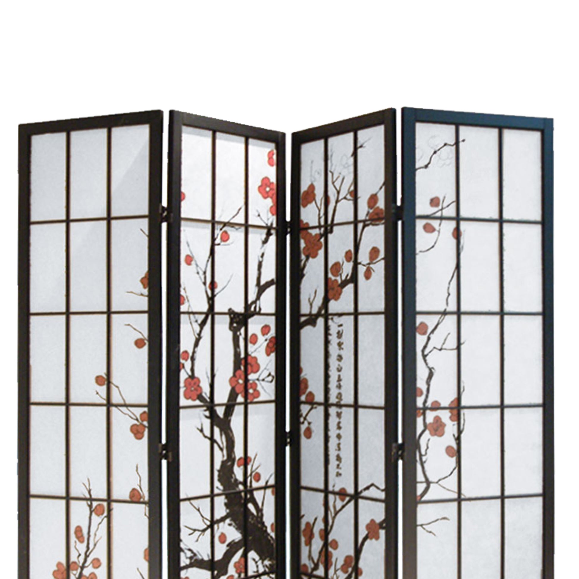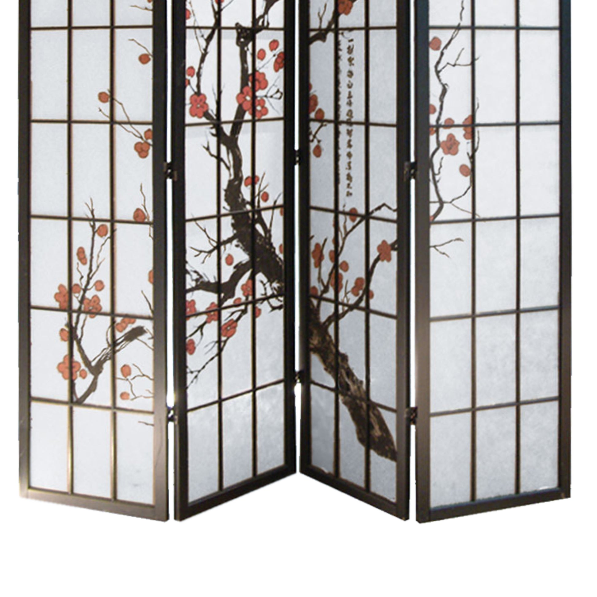 Need a break from your daily mundane chores, bring home this coveted transitional style 4 panel room divider. Provided with a foldable mechanism, this wooden room divider showcases tree and flowers print with shoji paper inserts. Incorporated with metal hinges, it will be a perfect addition to your existing decor.