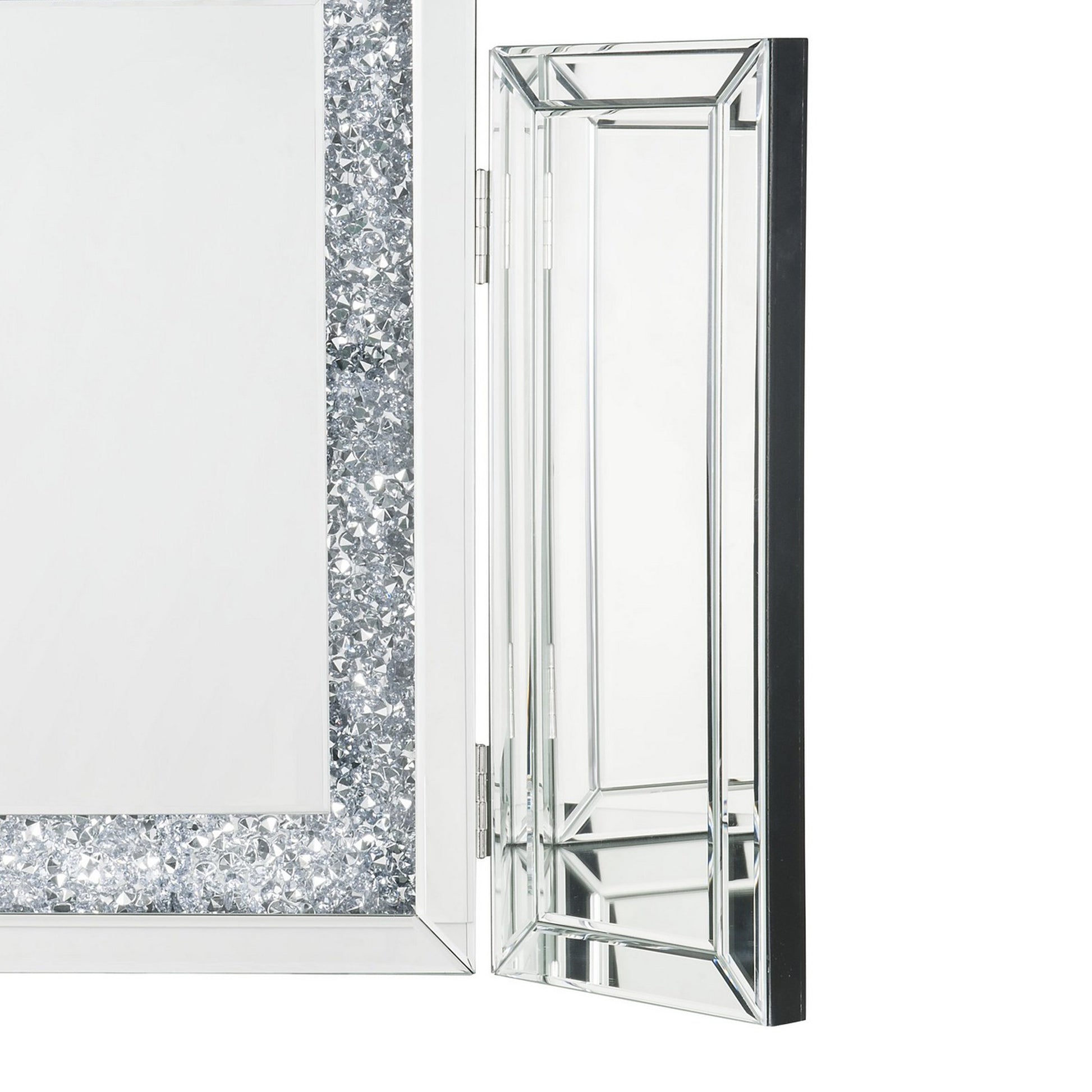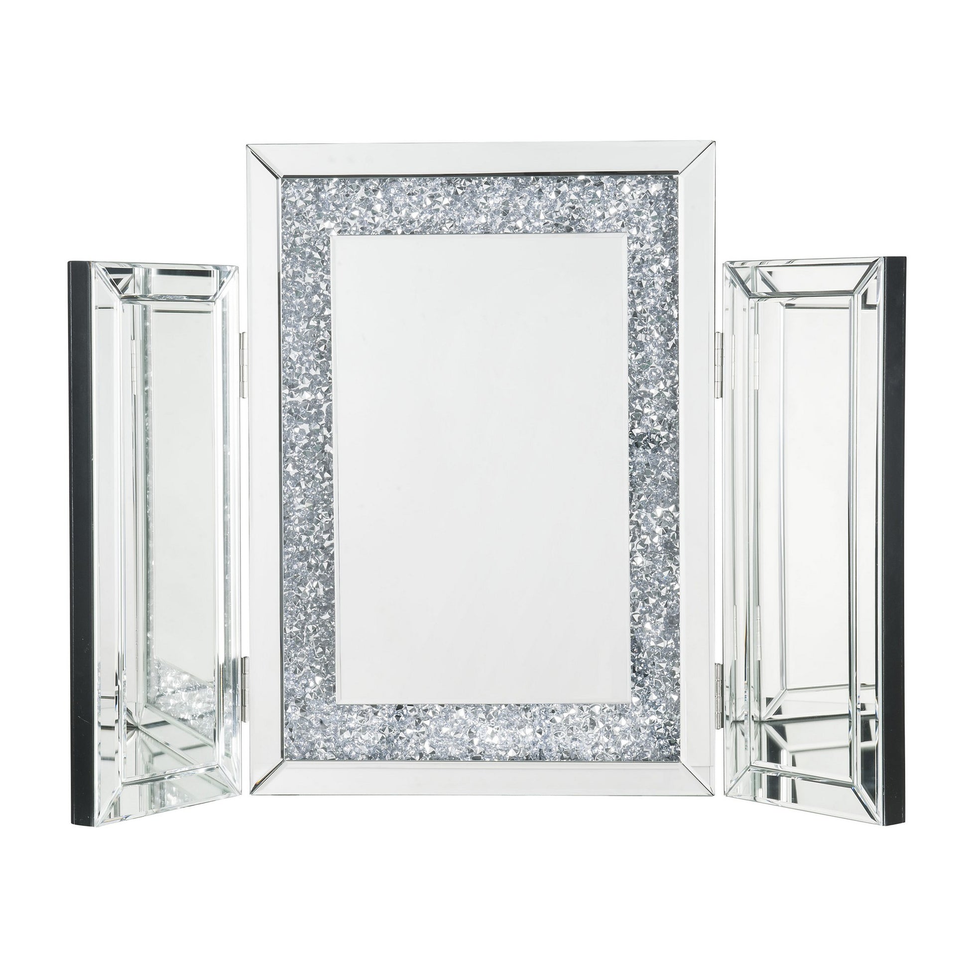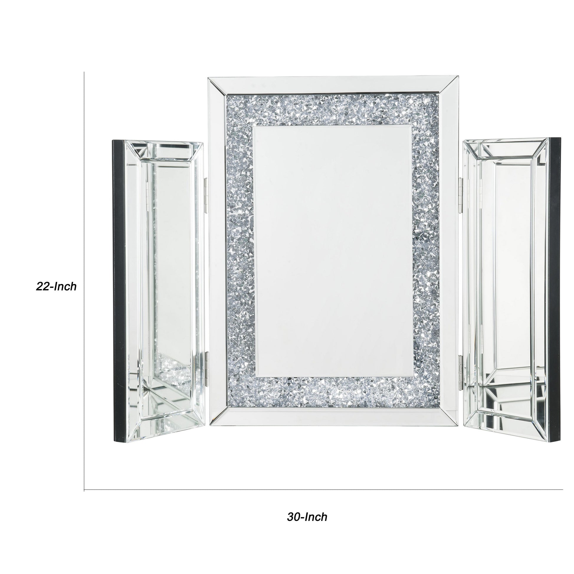 Tri Fold Mirror Panel Frame Accent Decor With Faux Diamond Silver