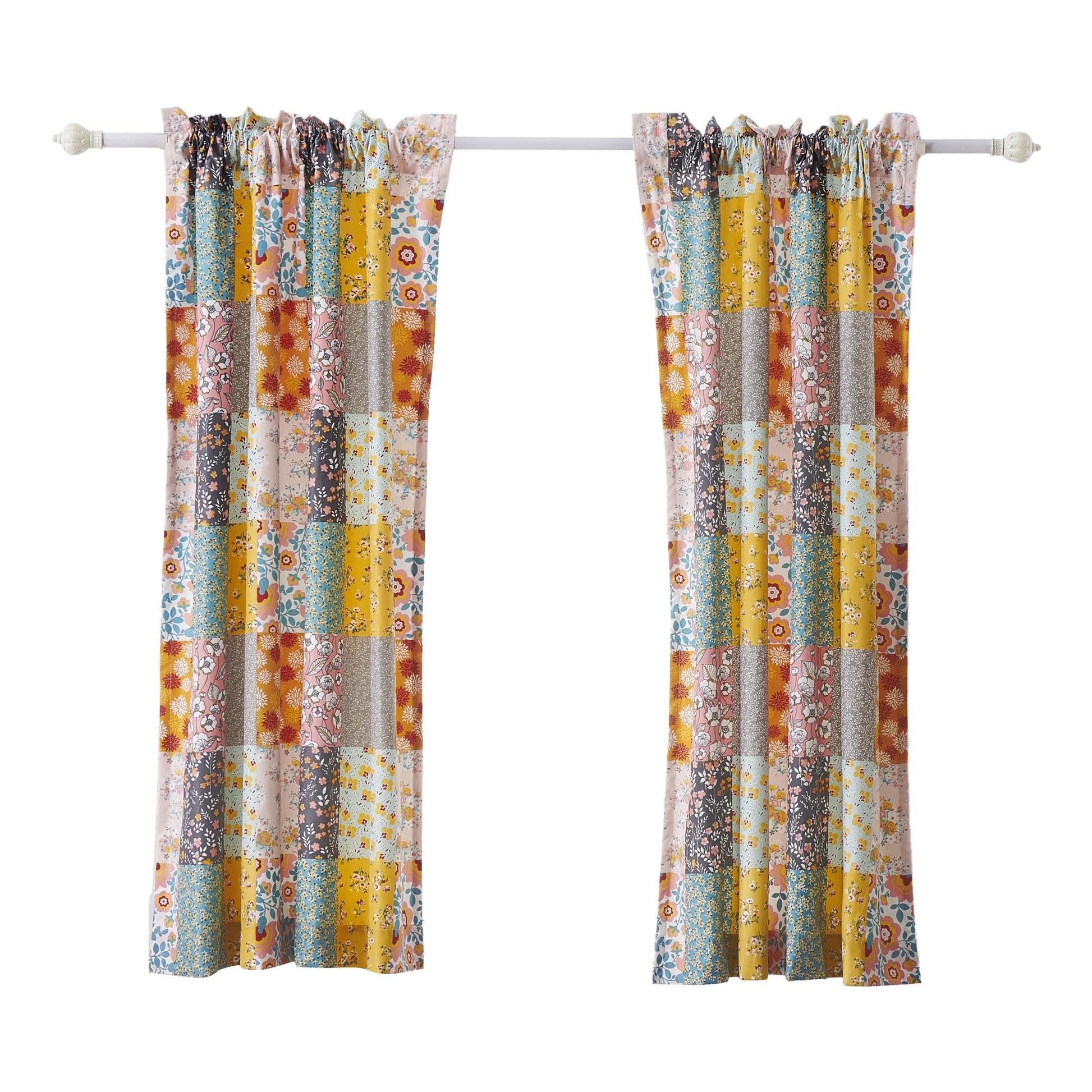 Turin 63 Inch Window Curtains Brushed Microfiber Multicolor Patchwork