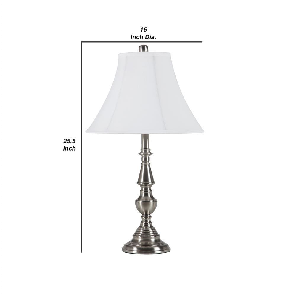 Turned Pedestal Metal Body Table Lamp with Empire Shade Silver