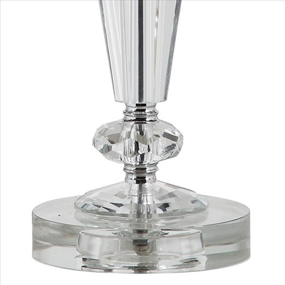 With immense creativity and elegance at the same time, this beautiful table lamp will definitely serve all your needs for a versatile piece. The turned tubular crystal body makes it appear absolutely breathtaking. The tapered shaped fabric shade makes the lights glow perfectly.
