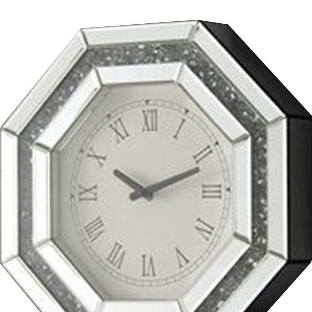 Grandeur meets sophistication with this contemporary style inspired Wall Clock. Featuring an octagonal shape and mirror trim details on the MDF constructed frame, the faux diamond inlays accentuate its charismatic appeal.