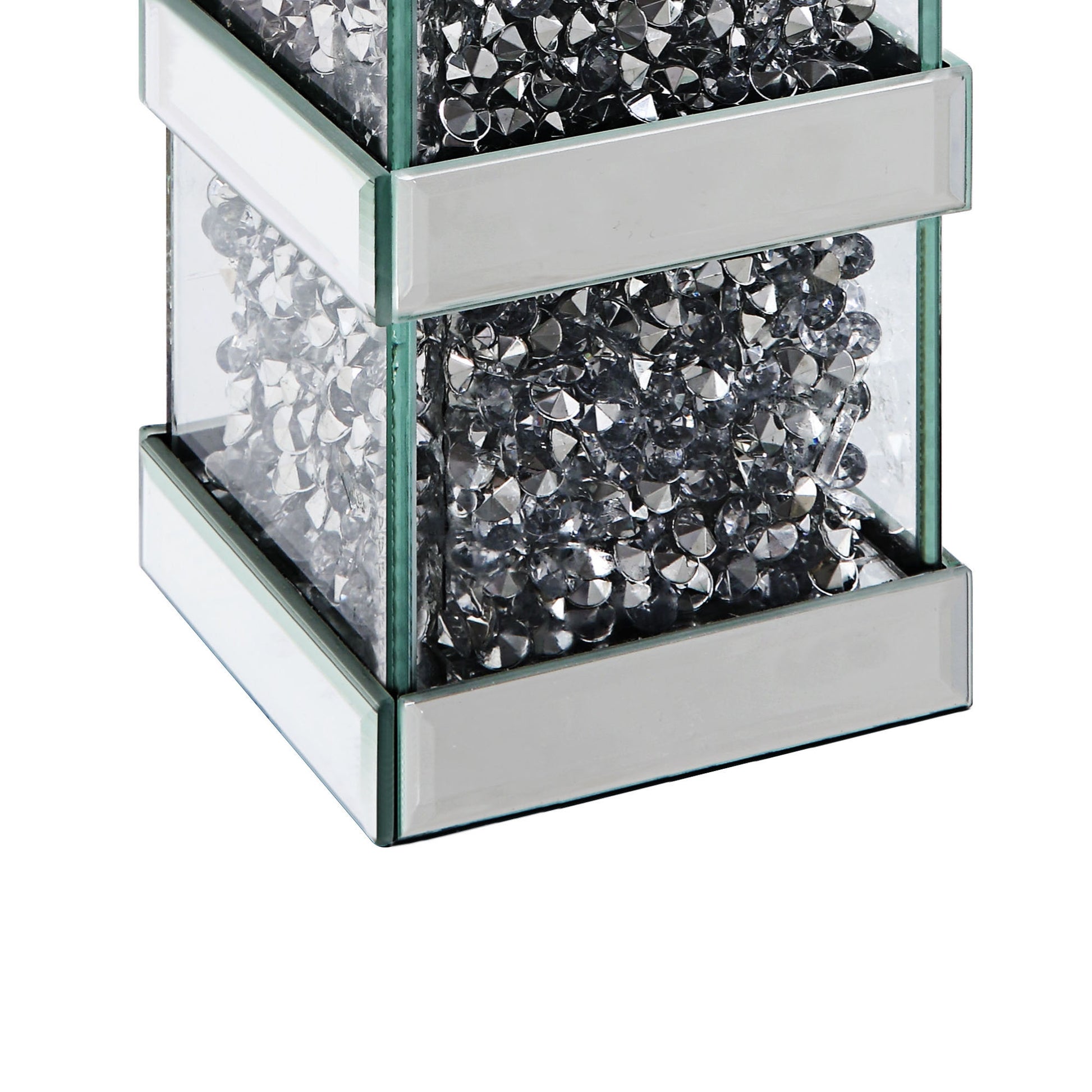 - Material: Mirror, Glass, Faux Crystals And Composite Wood