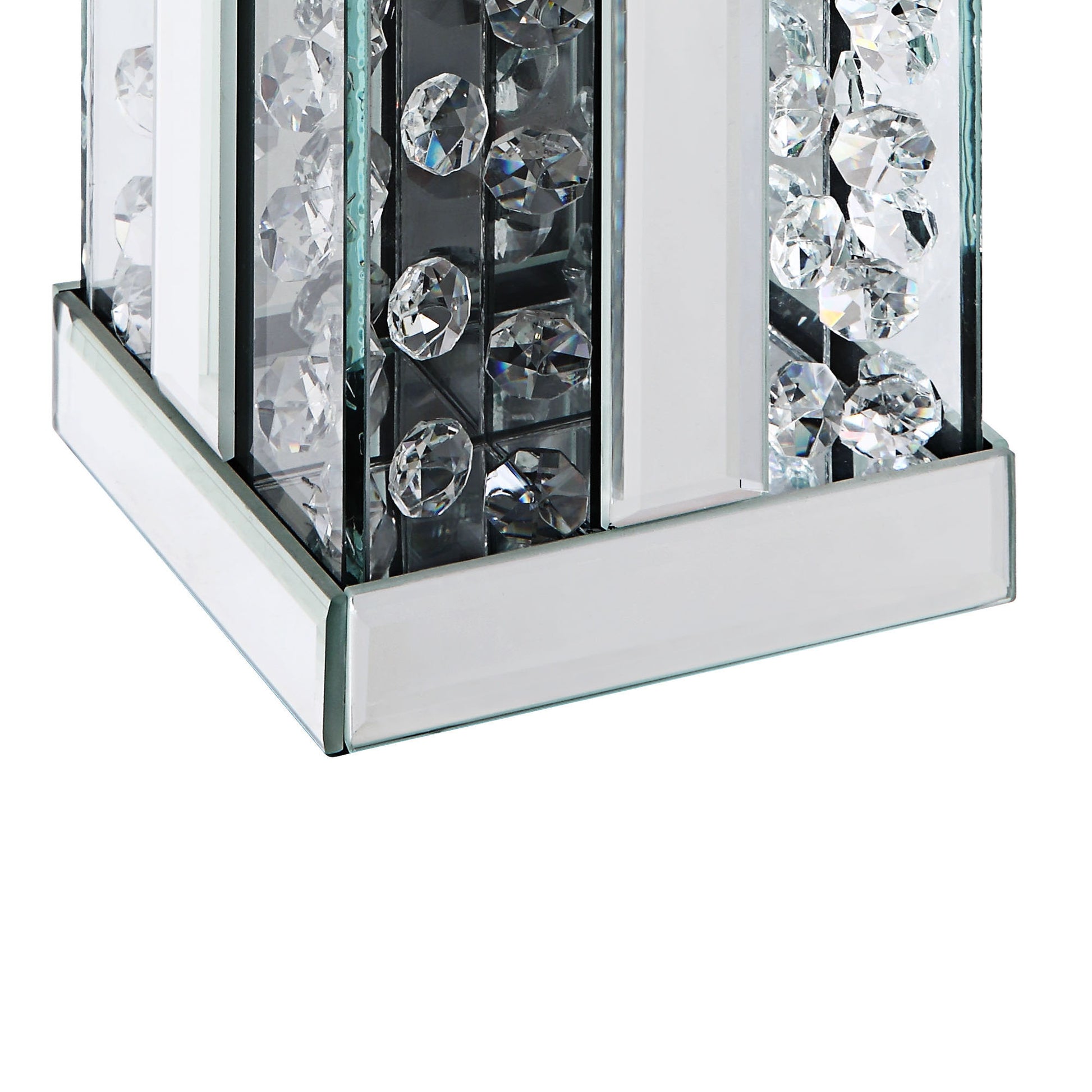 - Material: Mirror, Glass, Faux Crystals And Composite Wood