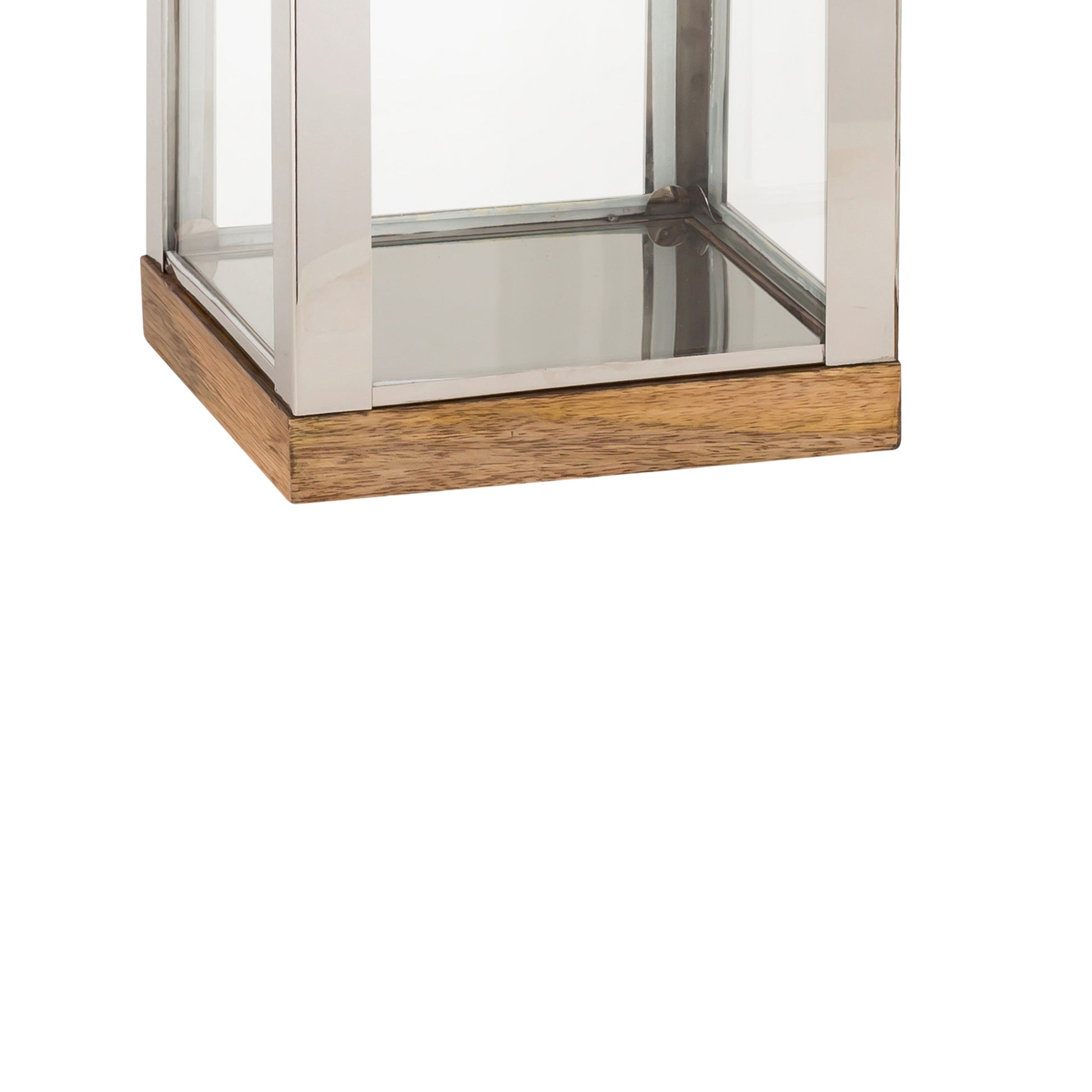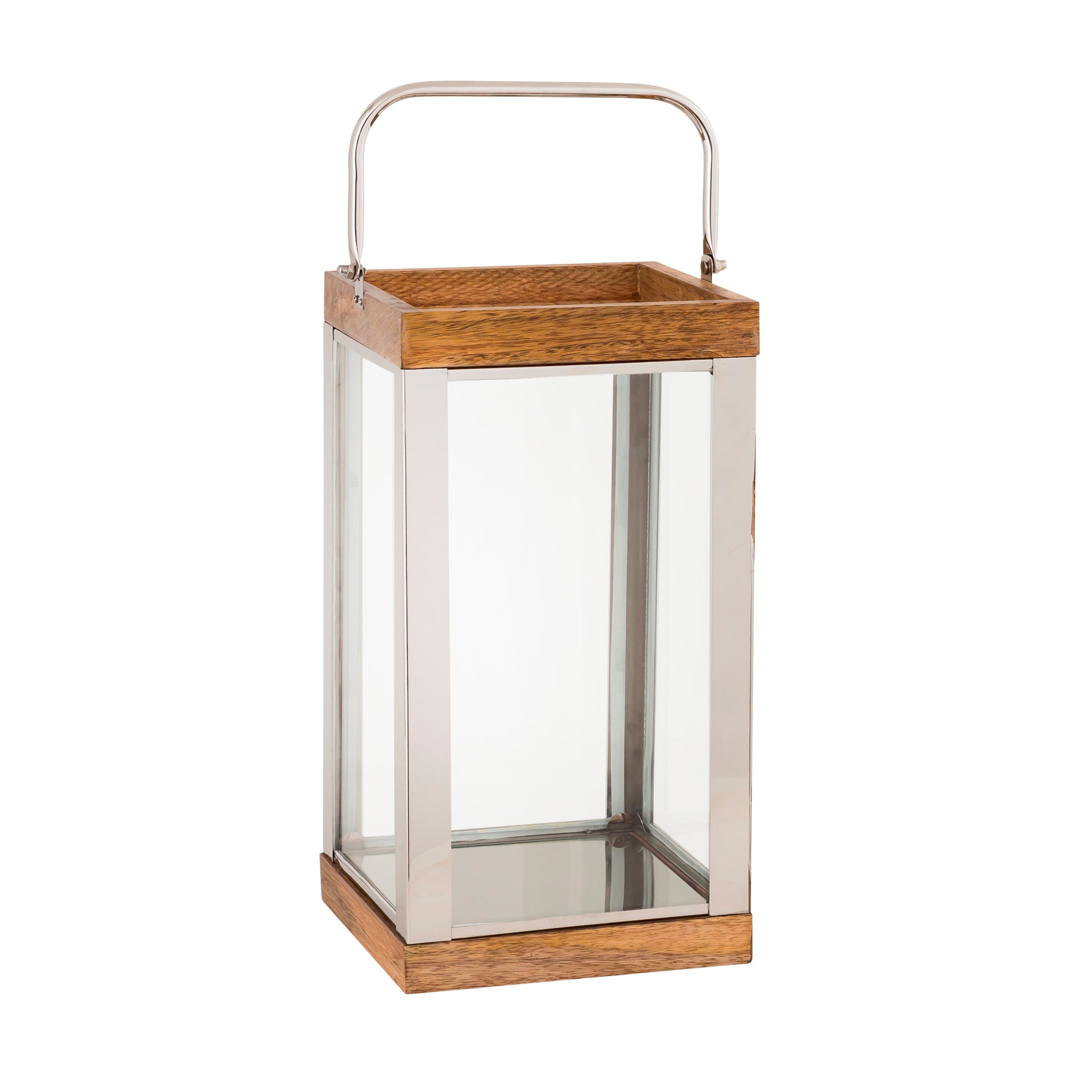 Illuminate your existing decor with the inclusion of this decorative lantern, featuring glass panel inserts to provide clear vision of the interior. Crafted from the combination of wood and metal, it is accented in the hues of brown and clear. Incorporated with a hanging hardware, it can be hung on the walls of your living space or hallway. It will not only serve the best of its purpose but will also enhance the overall aesthetics of your place.