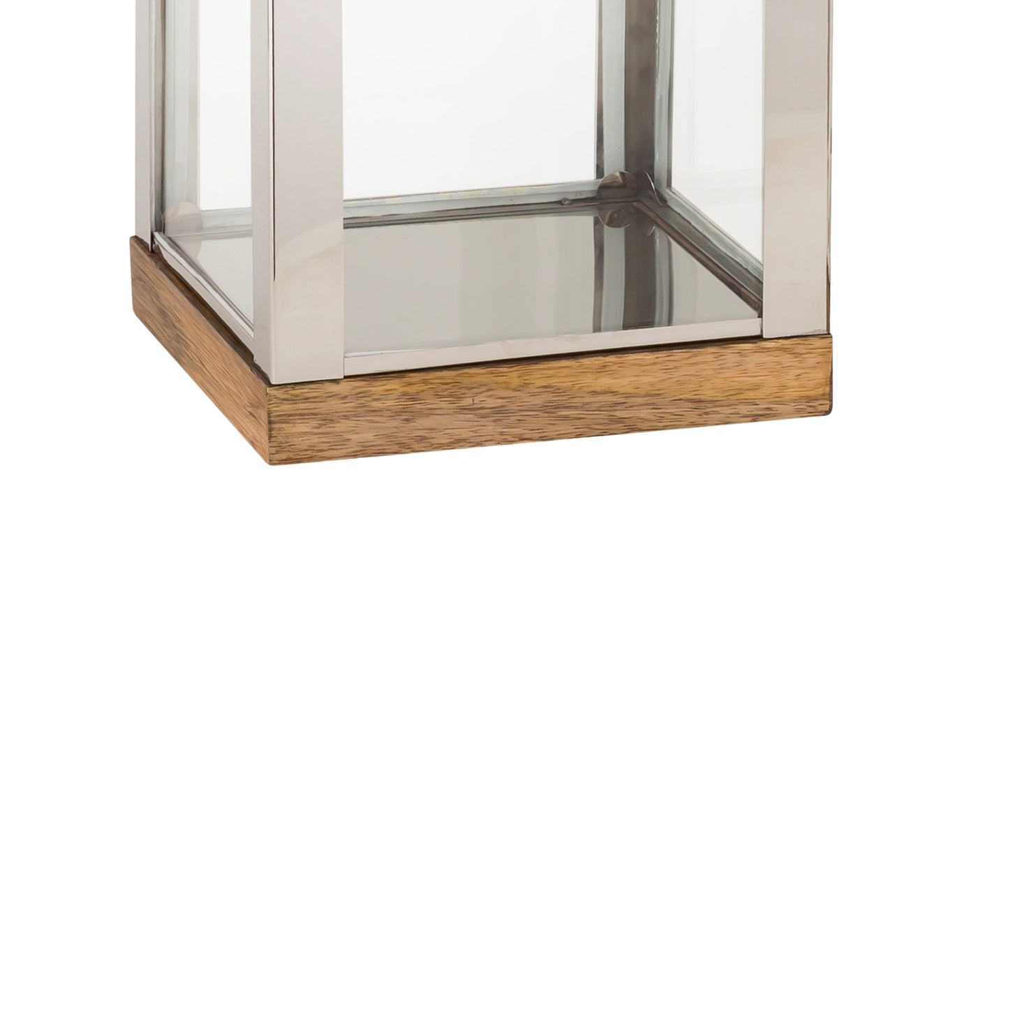 Wood And Metal Lantern With Glass Panel Inserts Large brown And Clear
