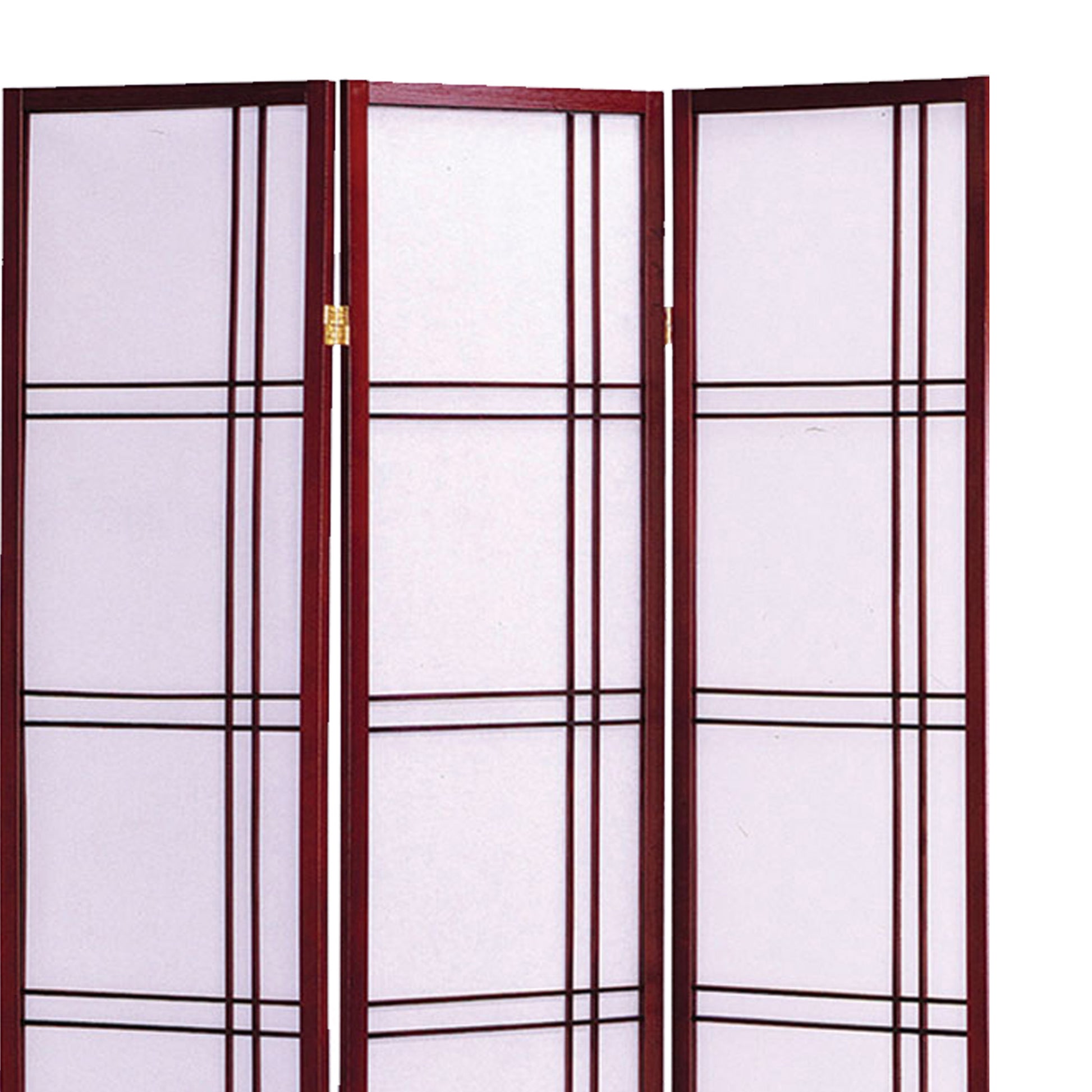 Need a break from your daily mundane chores, bring home this coveted transitional style 3 panel room divider. Provided with a foldable mechanism, this wooden room divider showcases checkered shoji paper panel inserts. Incorporated with metal hinges, it will be a perfect addition to your existing decor.