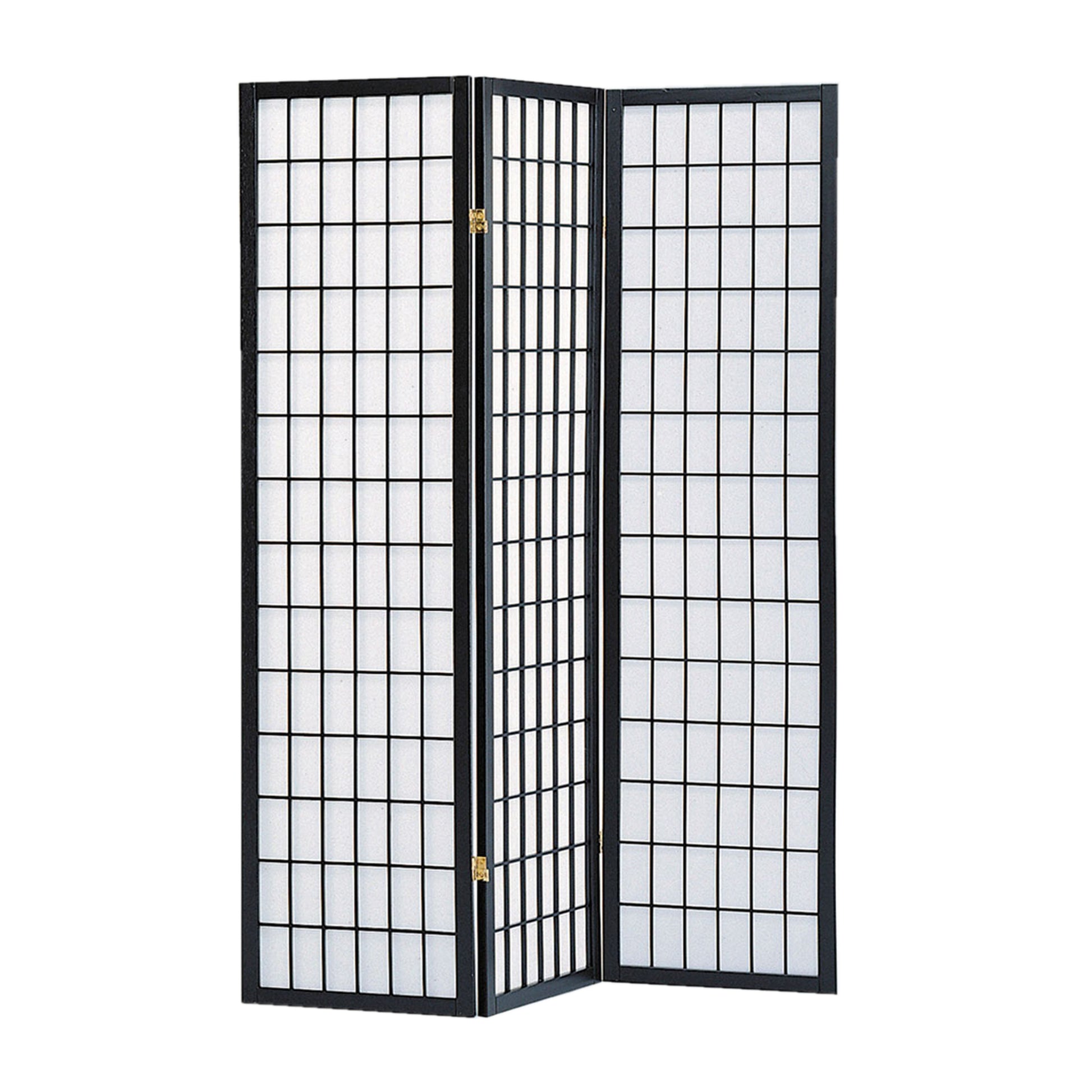 Add some privacy by bringing home this transitional style 3 panel room divider, featuring foldable mechanism which expedites your labour. Crafted from wood and shoji paper inserts, it comes in the hues of black and white. It will be a perfect addition to create a secluded space in your home.