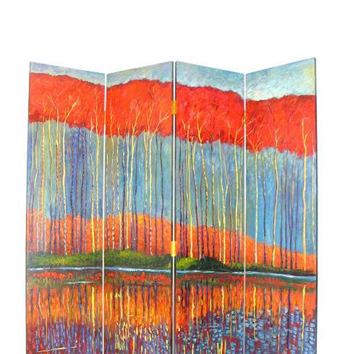 Create privacy and add artistic flair to your space with this attractive 4 Panel Room Divider. Made up of solid wood for durability, this piece features a colorful hand painted picture of trees that are themed after a forest