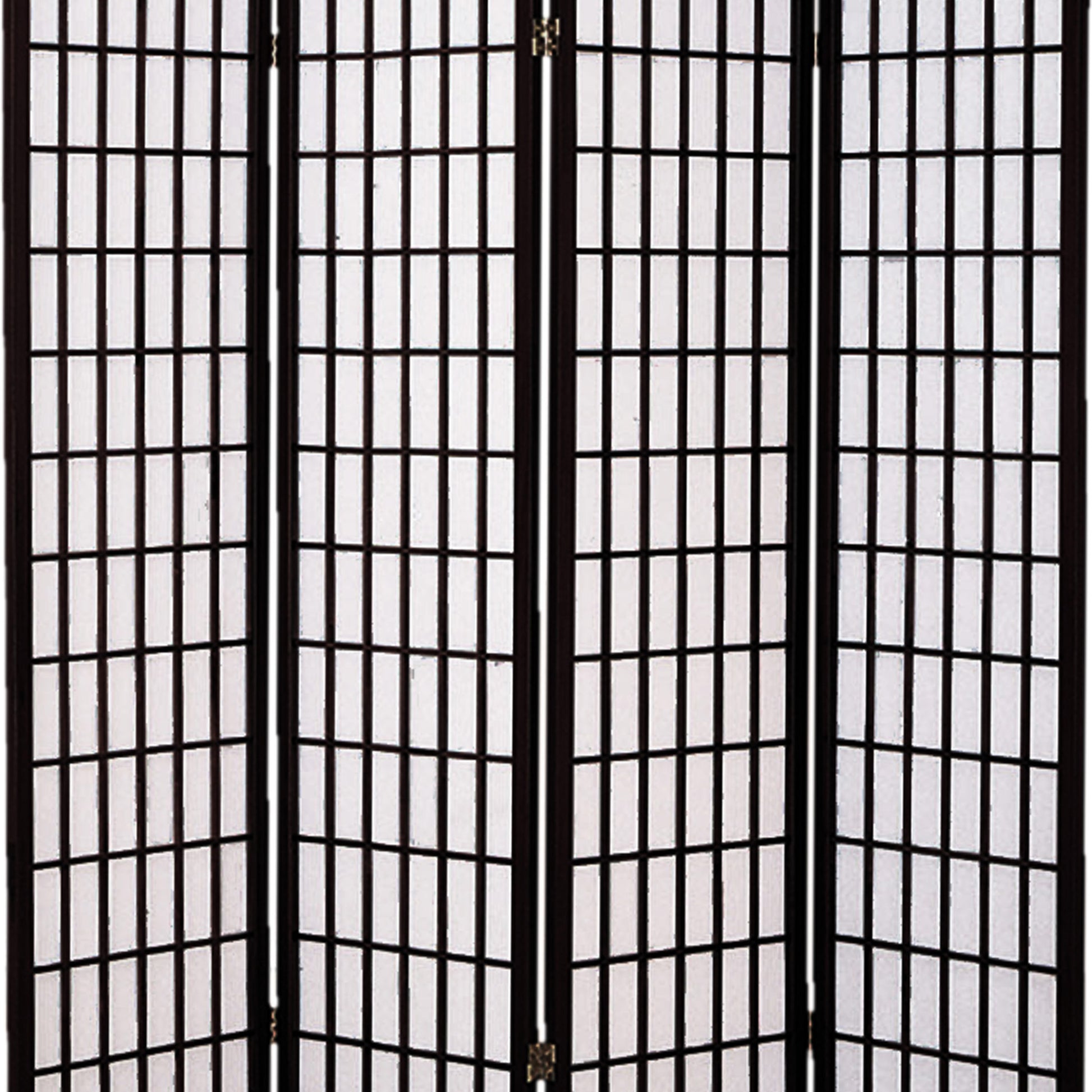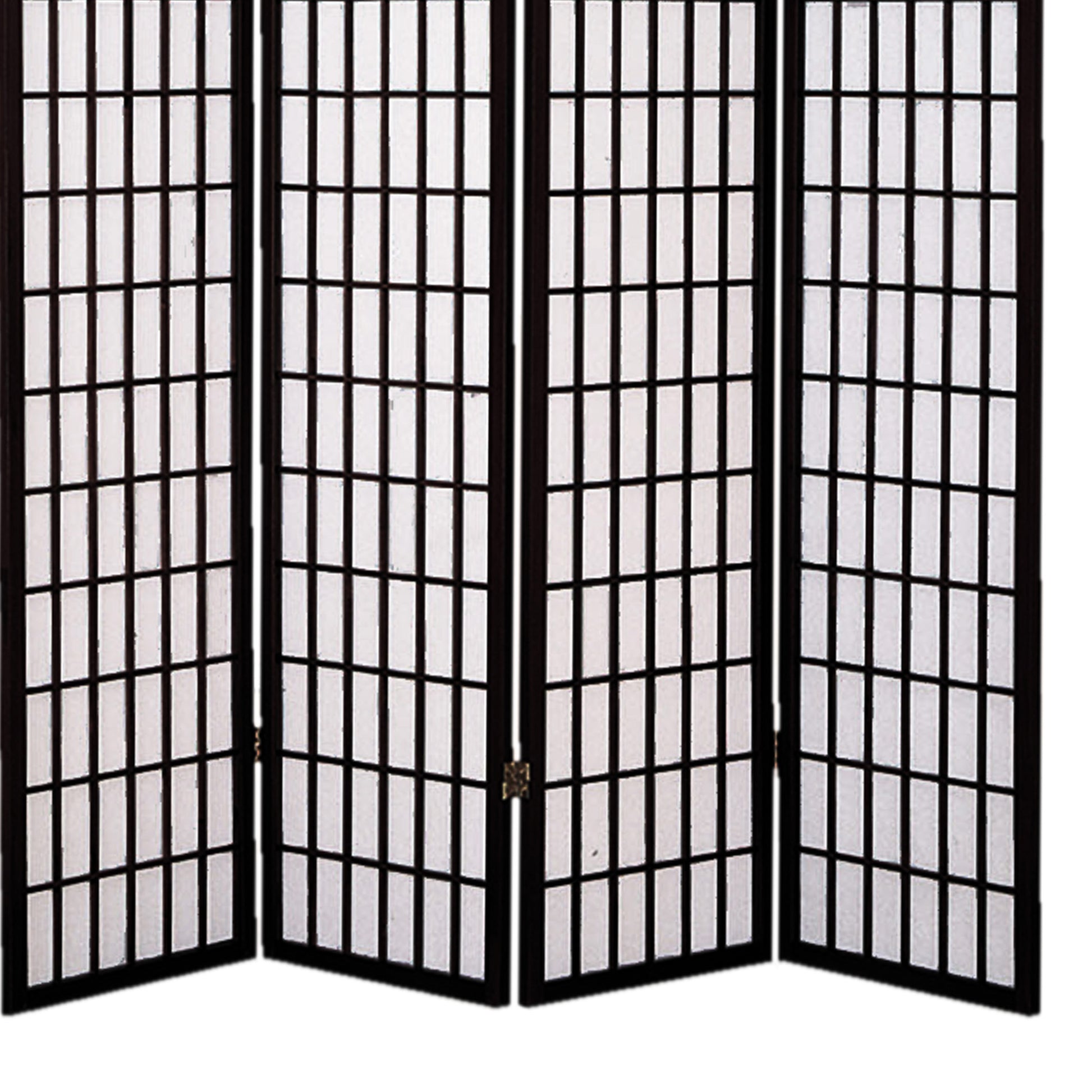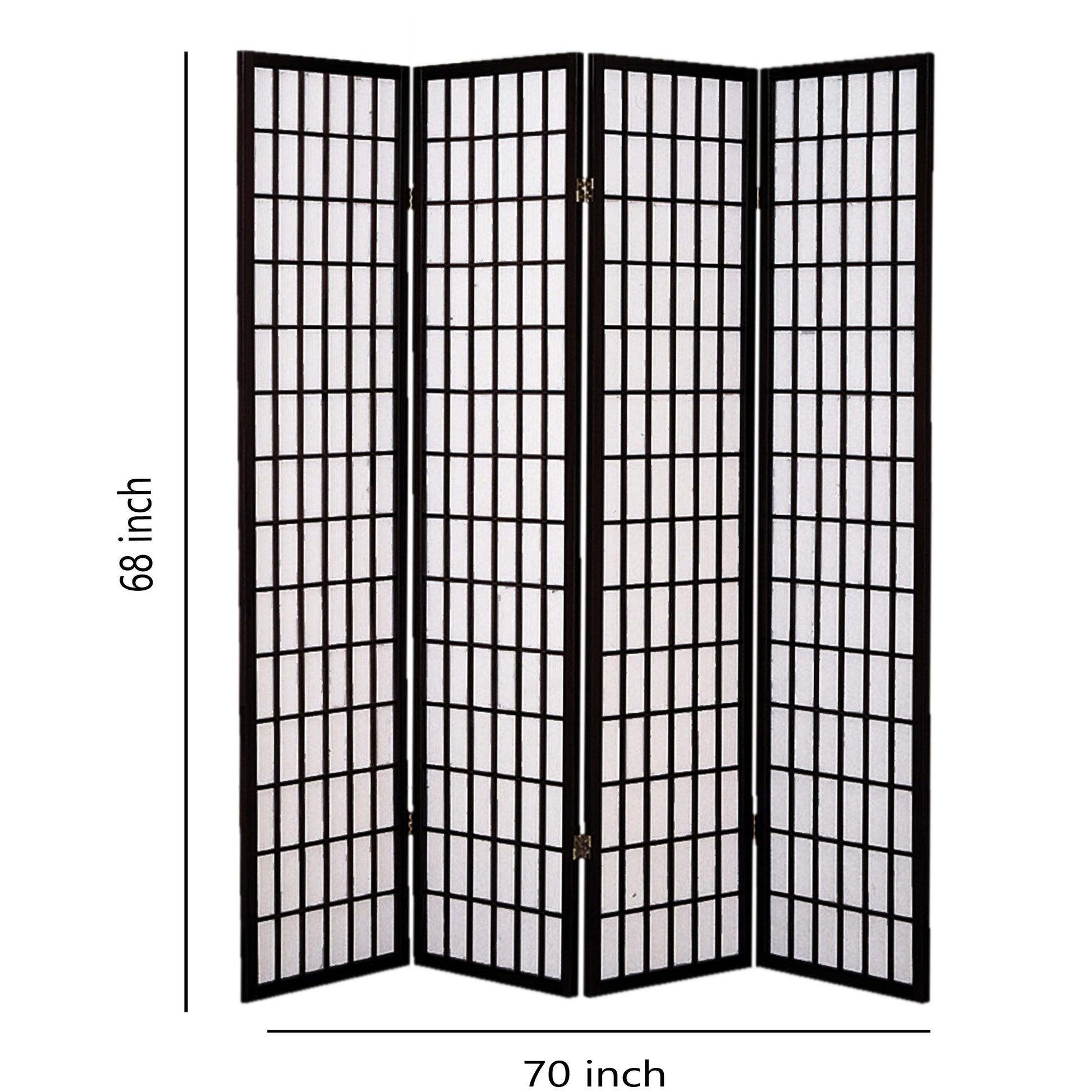Wooden 4 Panel Room Divider with Shoji Paper Inserts, Black and White