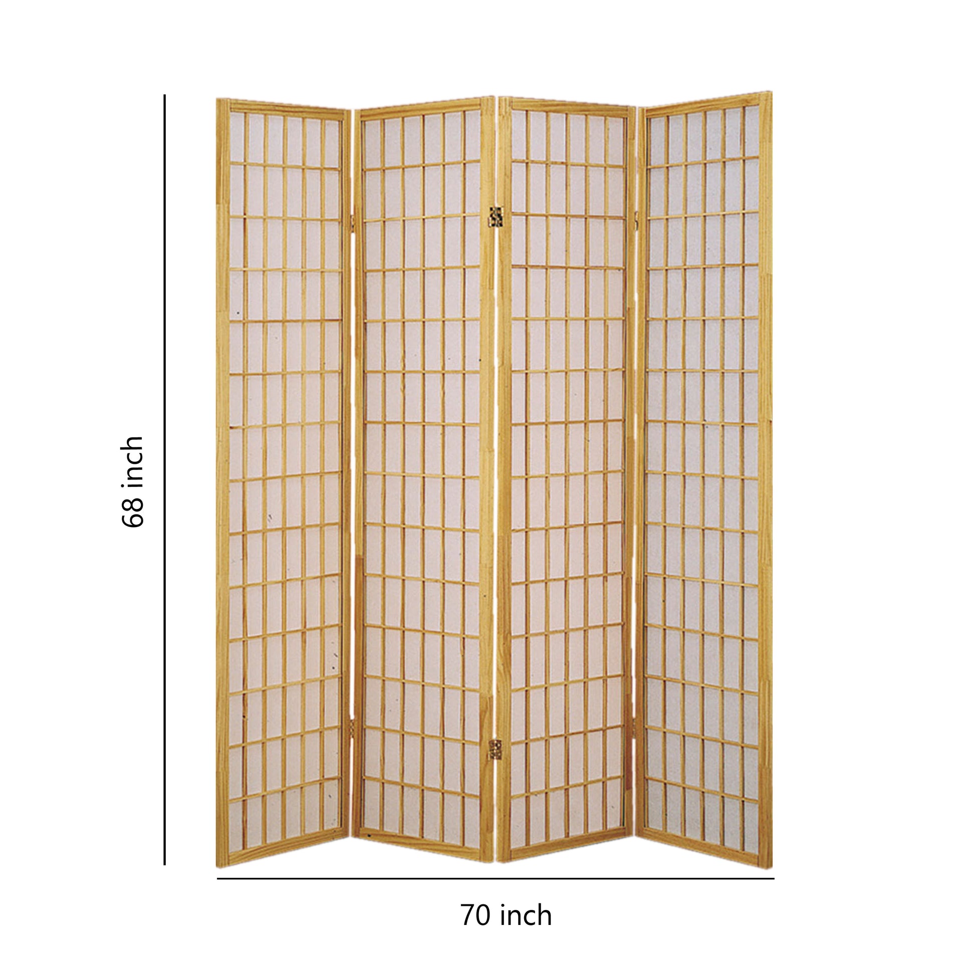 Wooden 4 Panel Room Divider with Shoji Paper Inserts, Brown and White