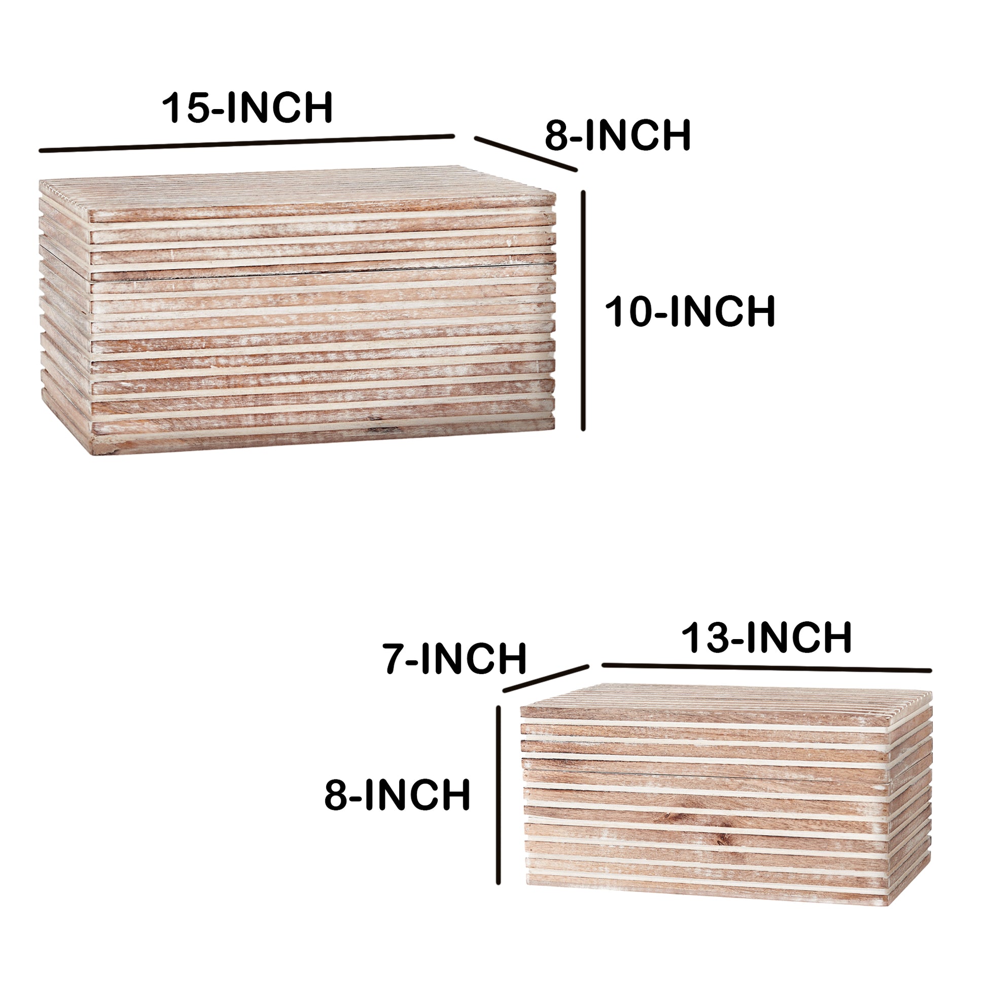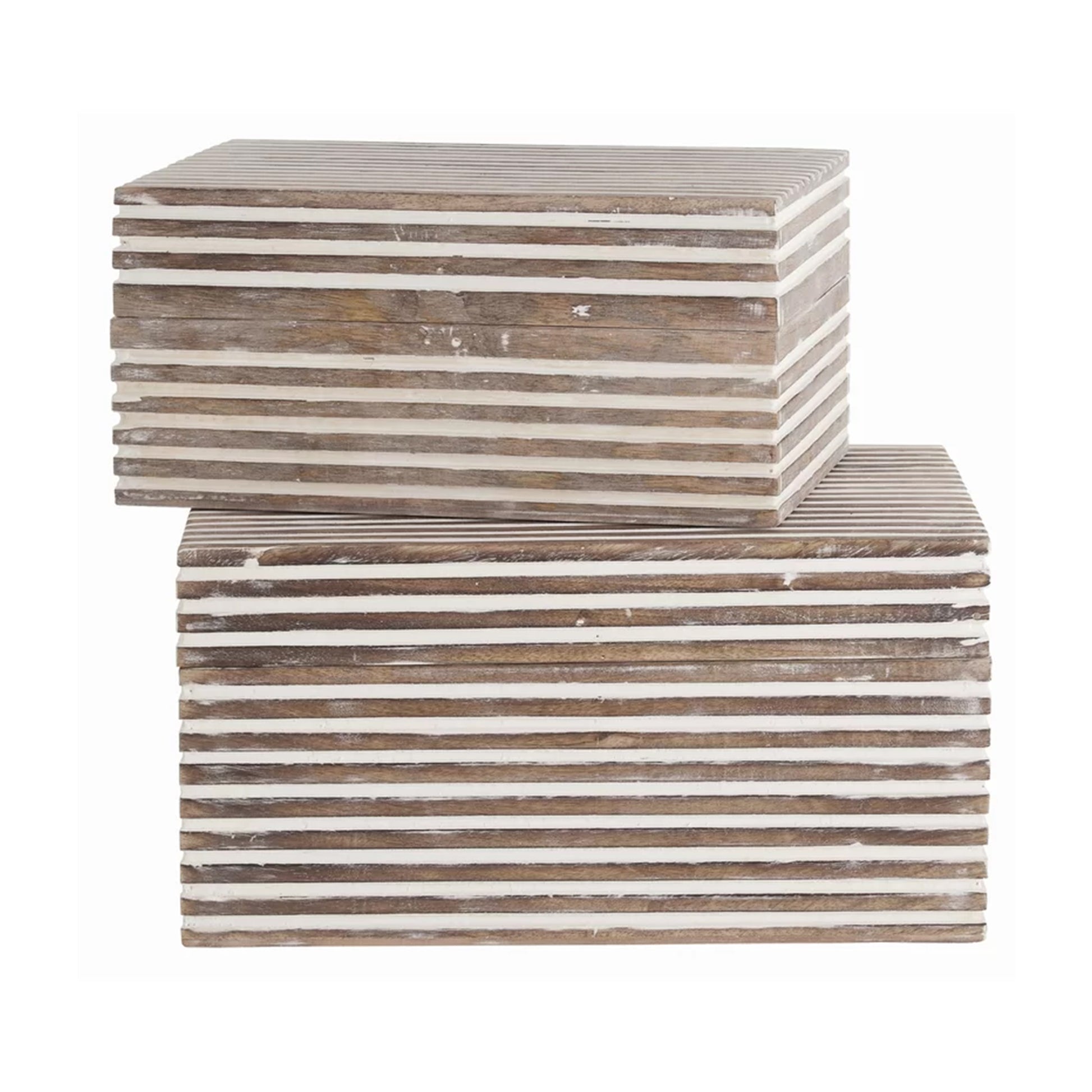 Wooden Decorative Storage Box With Block Stripe Pattern Set Of 2 Whitewash