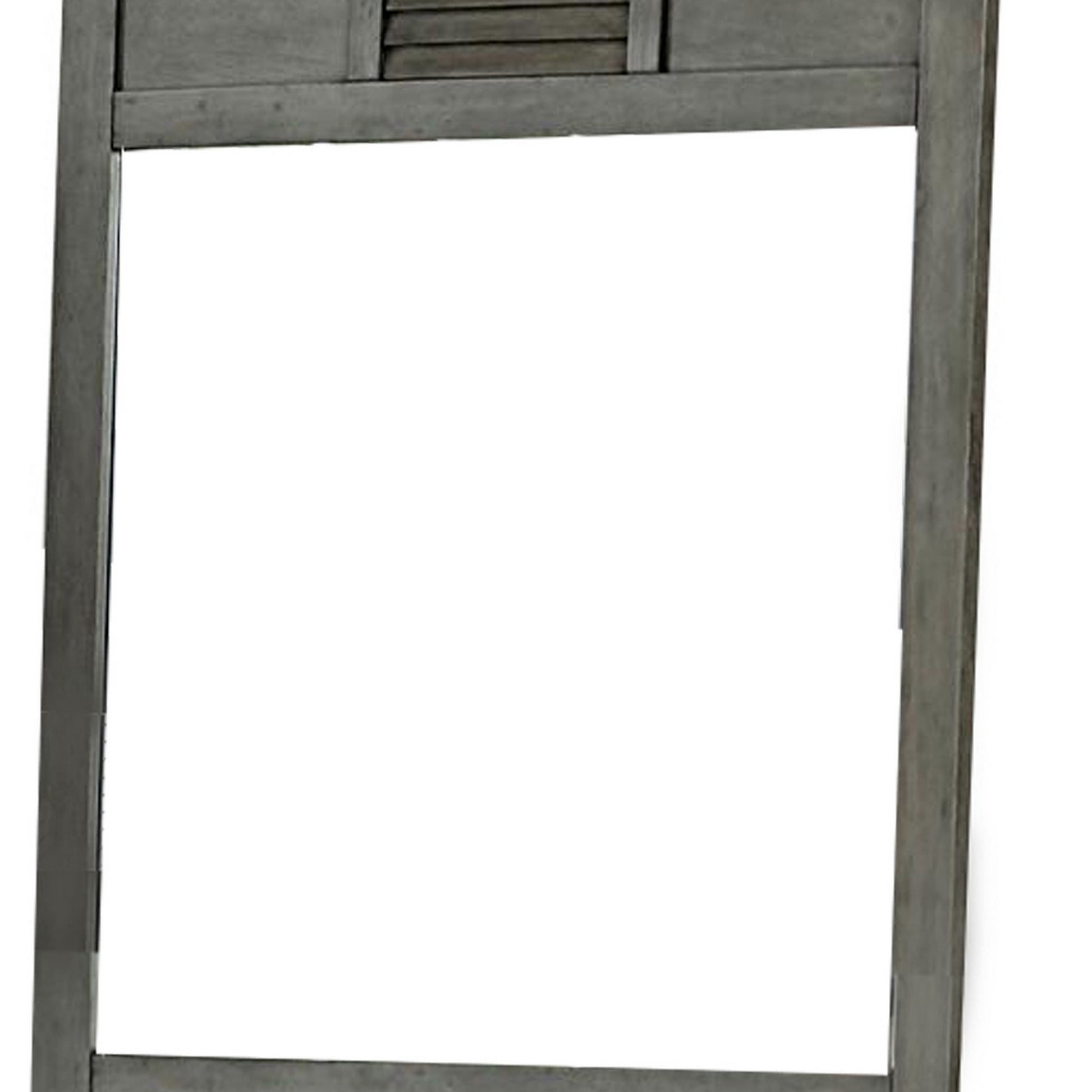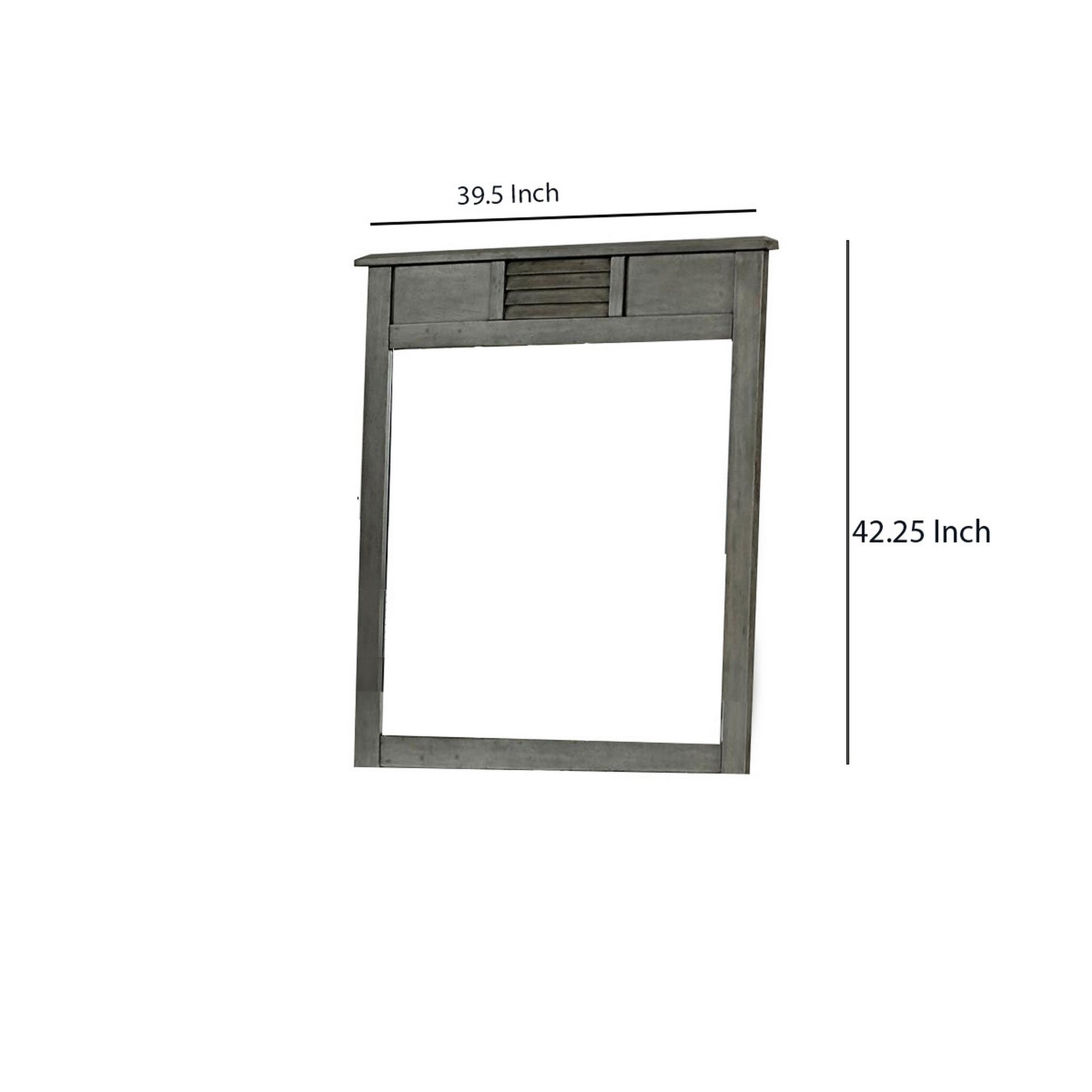 Wooden Frame Mirror With Shutter Design And Projected Top Gray