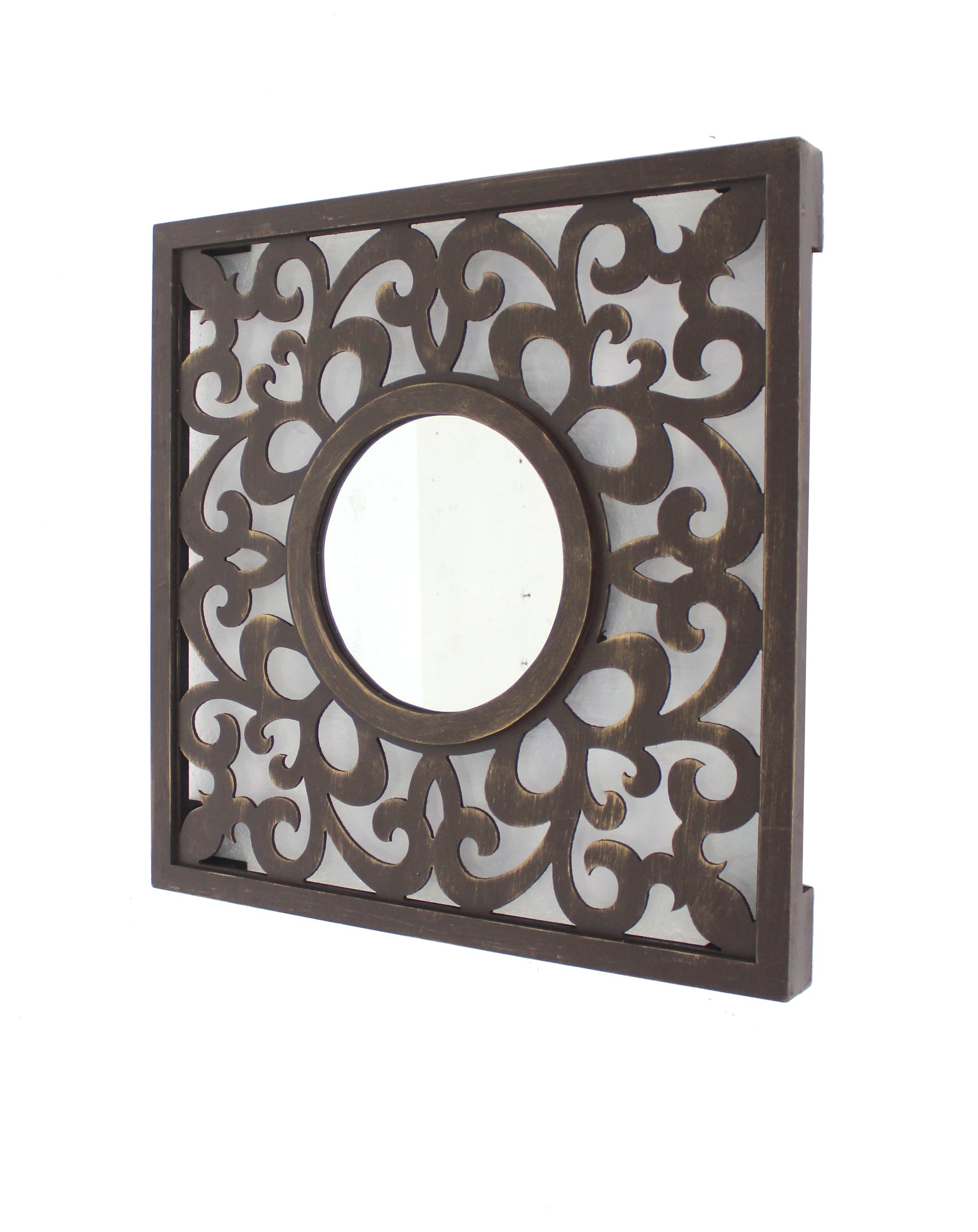 Decorate your walls with this finely designed wall mirror, featuring a carved design and sturdy square wood frame with a mirror that provides support and allows easy mounting. Use this mirror to compliment the traditional theme in your home.