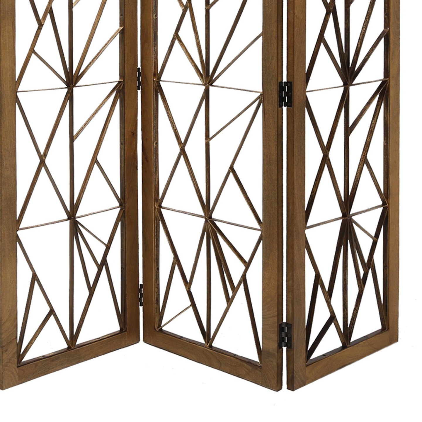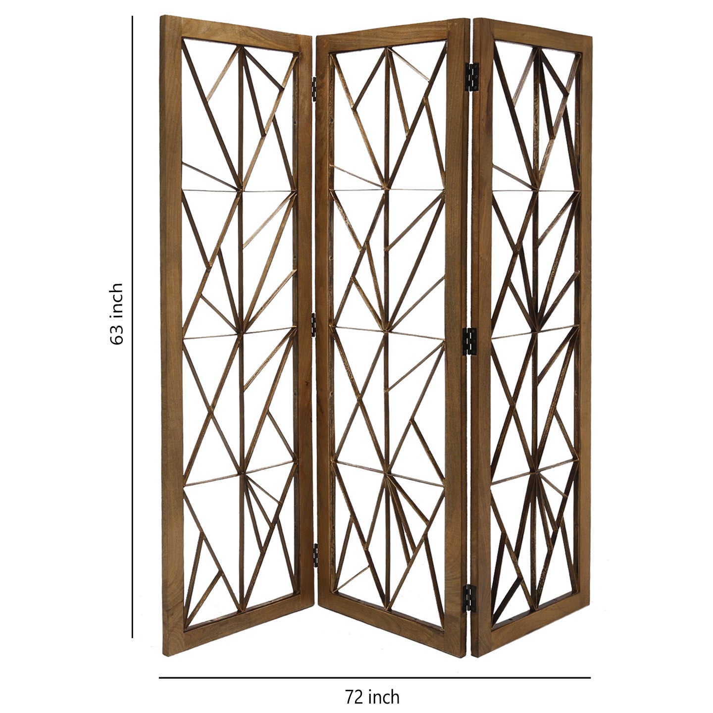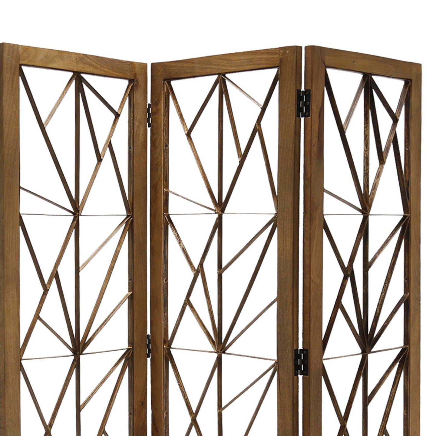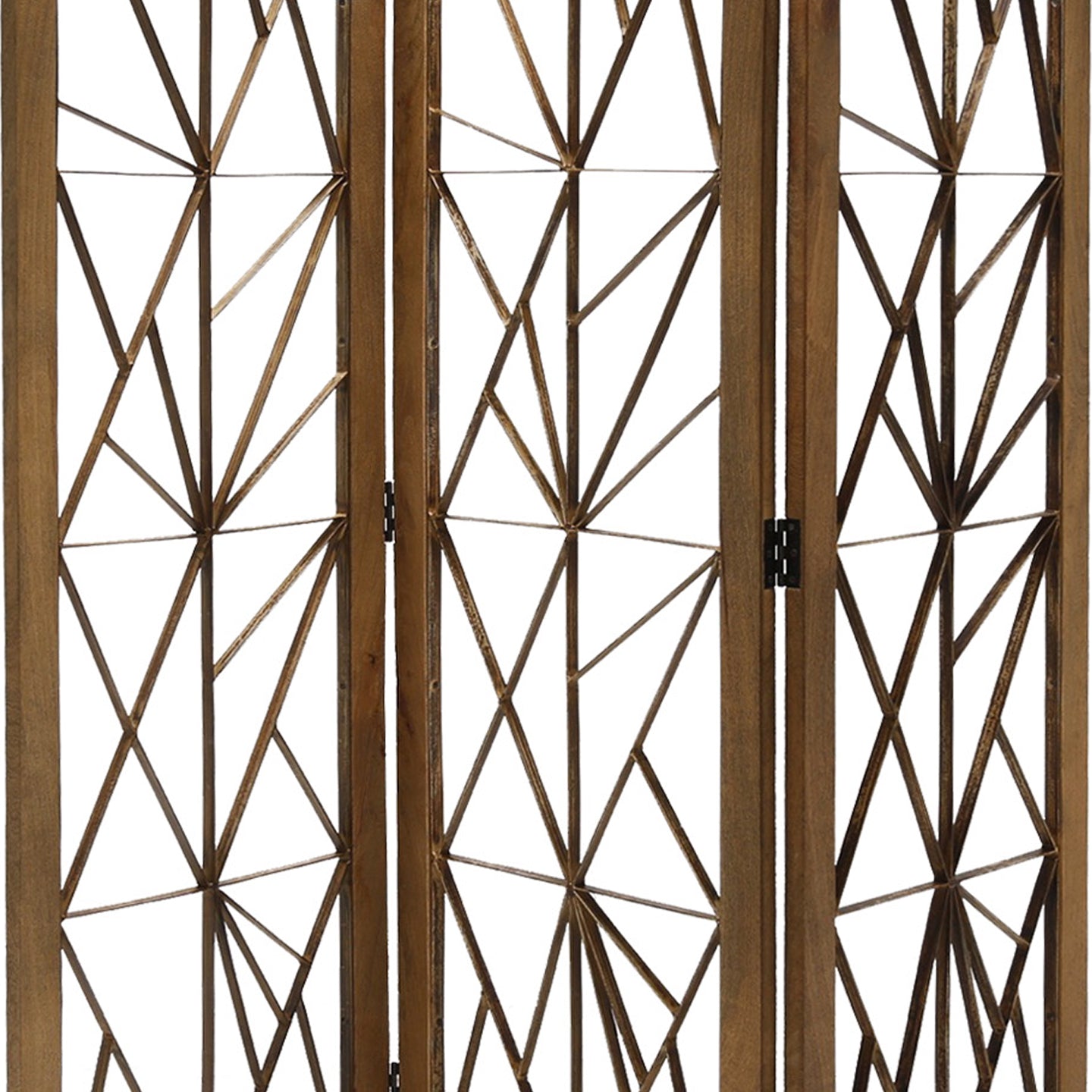 Amalgamate your home decor setting and provide a backdrop to your home and office wall space by incorporating this industrial style 3 panel room divider. Provided with intricate cut out network details, it is accented in the hue of brown. Incorporated with a foldable mechanism, it will be a perfect addition to your place.