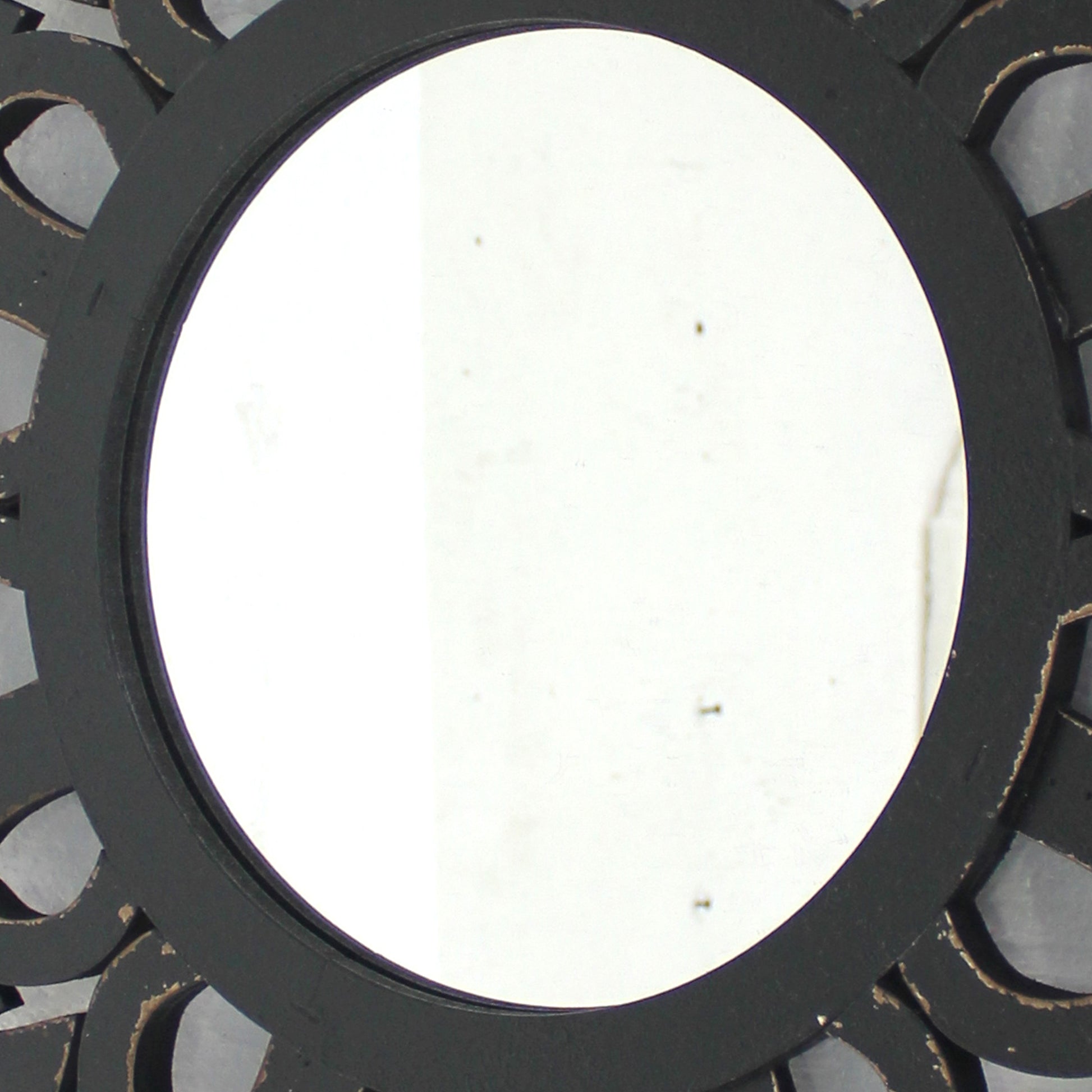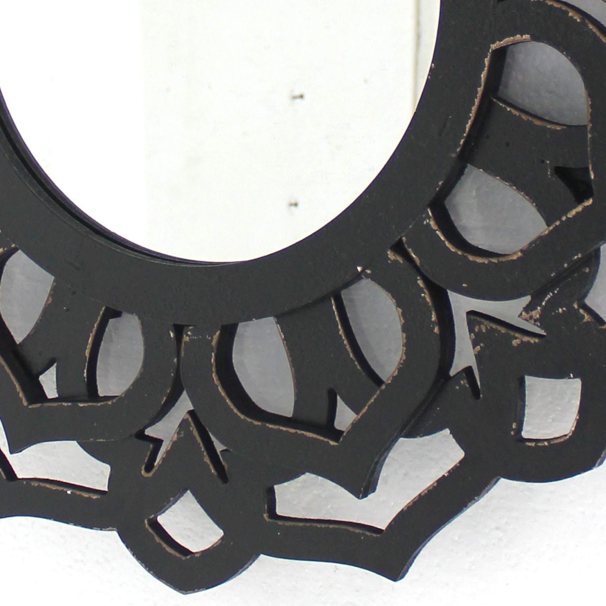 Wooden Mirror Blooming Lotus Wall Decor With Floral Engraving Black