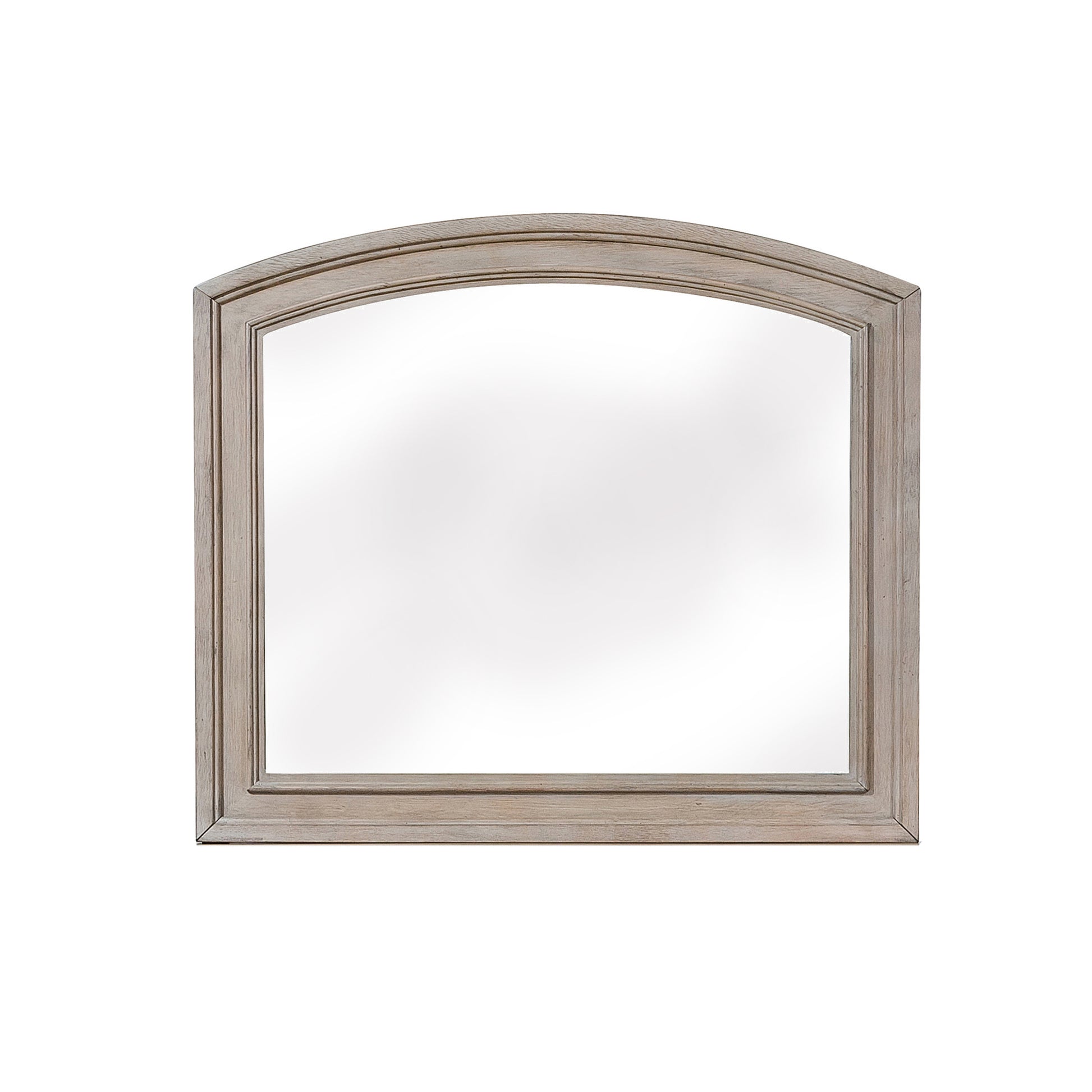 Wooden Mirror With Natural Grain Texture Finish And Curved Top Gray