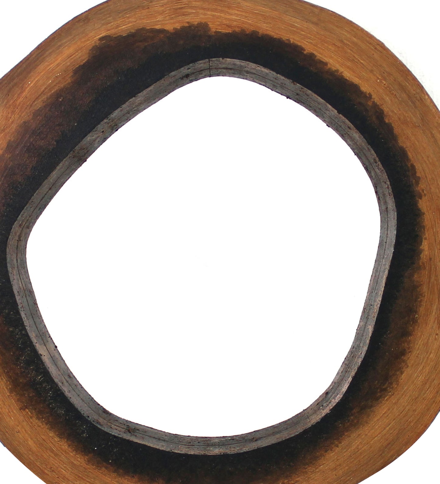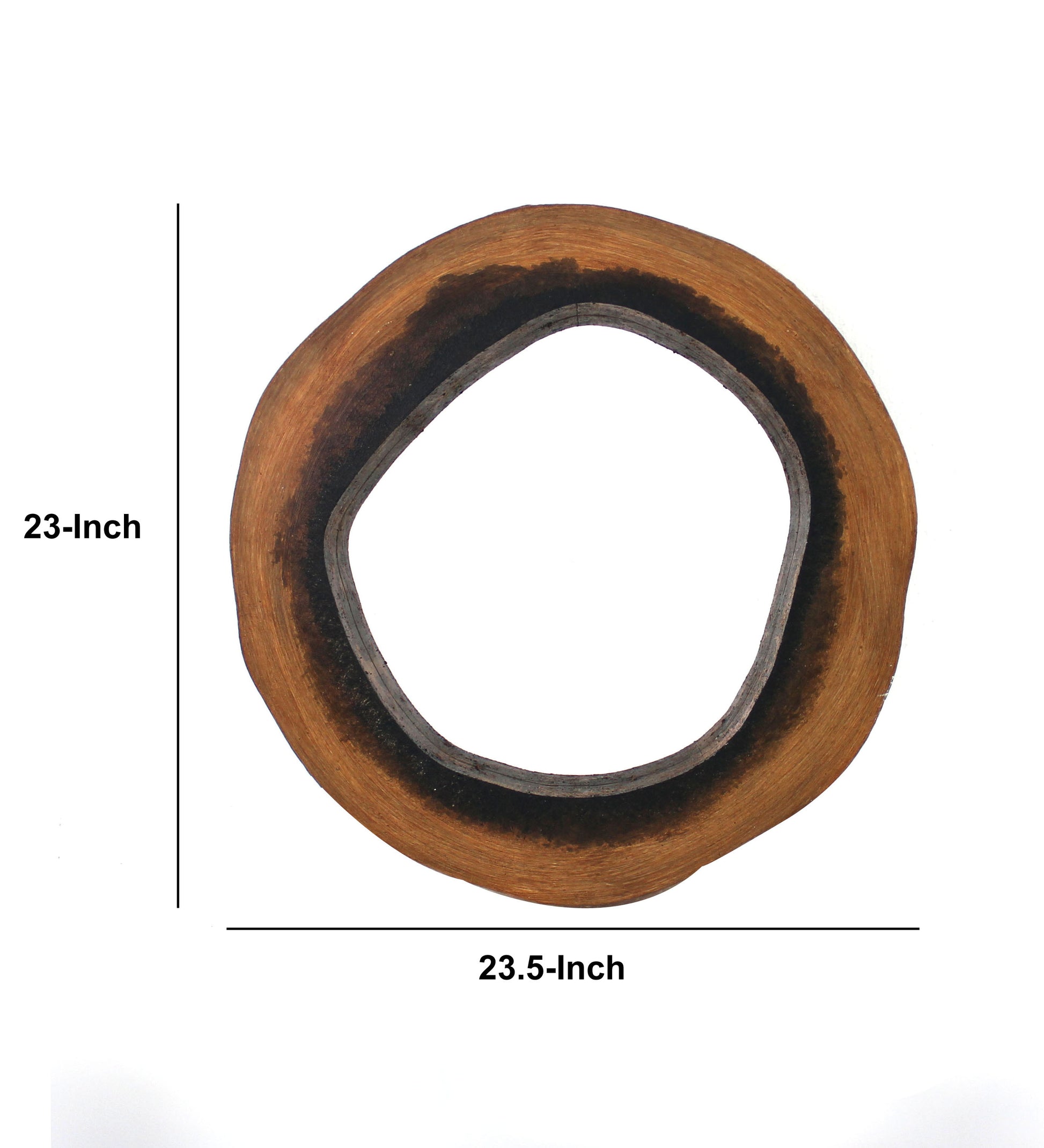 Amplify the beauty and grace of your home with the inclusion of this well crafted wall mirror. It features a wooden frame in brown finish having shaded black inner edges to offer a dual tone finish. Its shape resembles like grotto circle having cave like curves.